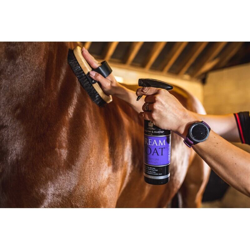 馬の被毛に美しいツヤと輝きを与えるグロススプレー。べたつかず軽い仕上がりで、ショーや日常のグルーミングに最適です。たてがみやしっぽに使用すると、編み込み前のまとまりを良くし、毛並みを整えます。筋肉のラインを際立たせ、全体のシルエットを美しく見せる効果も。軽いフォーミュラで扱いやすく、使うたびに清潔で上品な仕上がりに導きます。