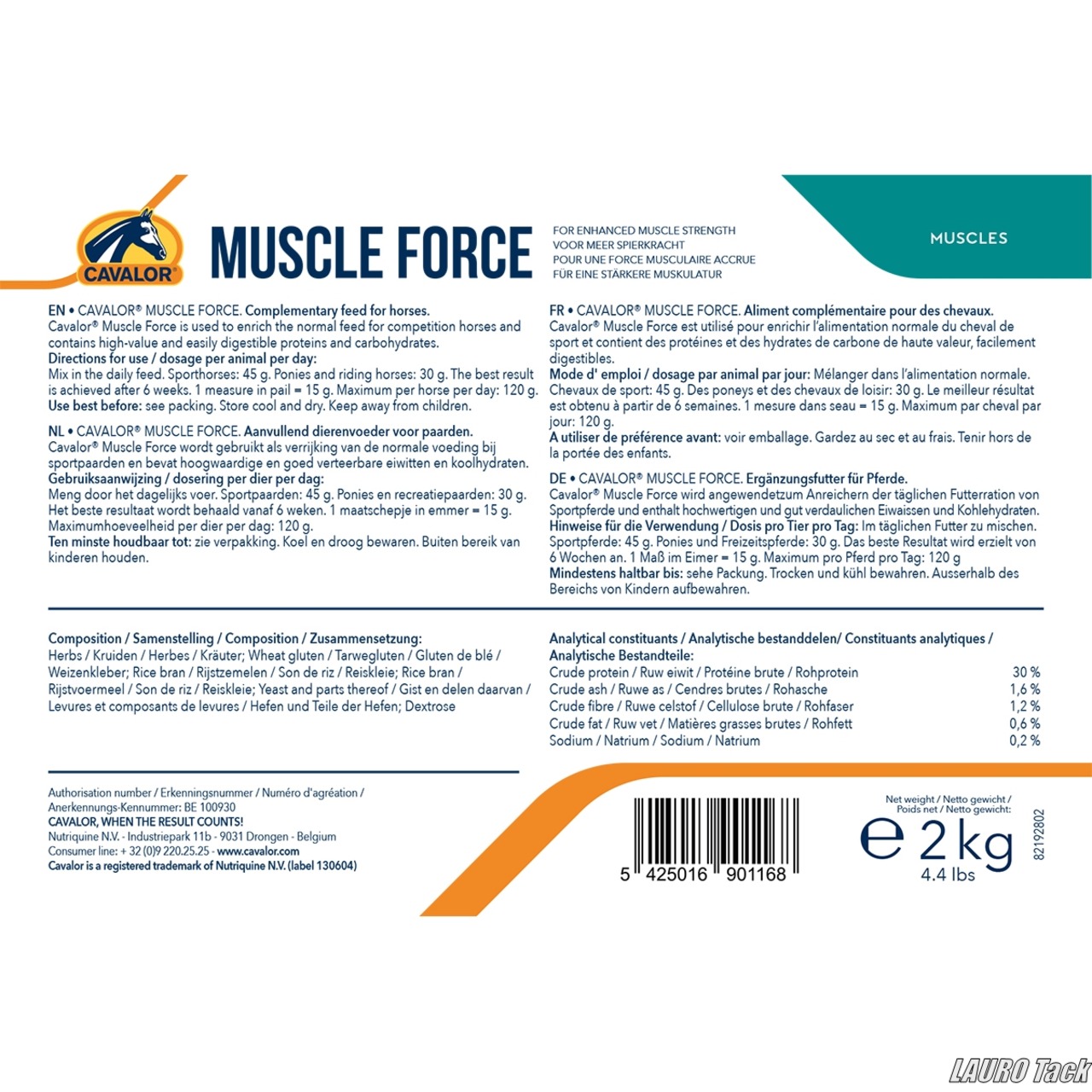 Cavalor Muscle Force(Cavalor)筋肉量の維持と発達をサポートする高性能サプリメントです。天然タンパク質源とビタミンEを配合し、筋肉の修復と成長を促進します。回復期の馬やトレーニング強度を上げたい馬に最適で、持久力アップにも貢献します。