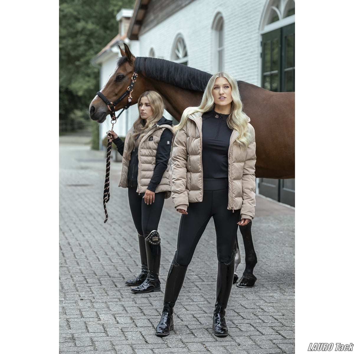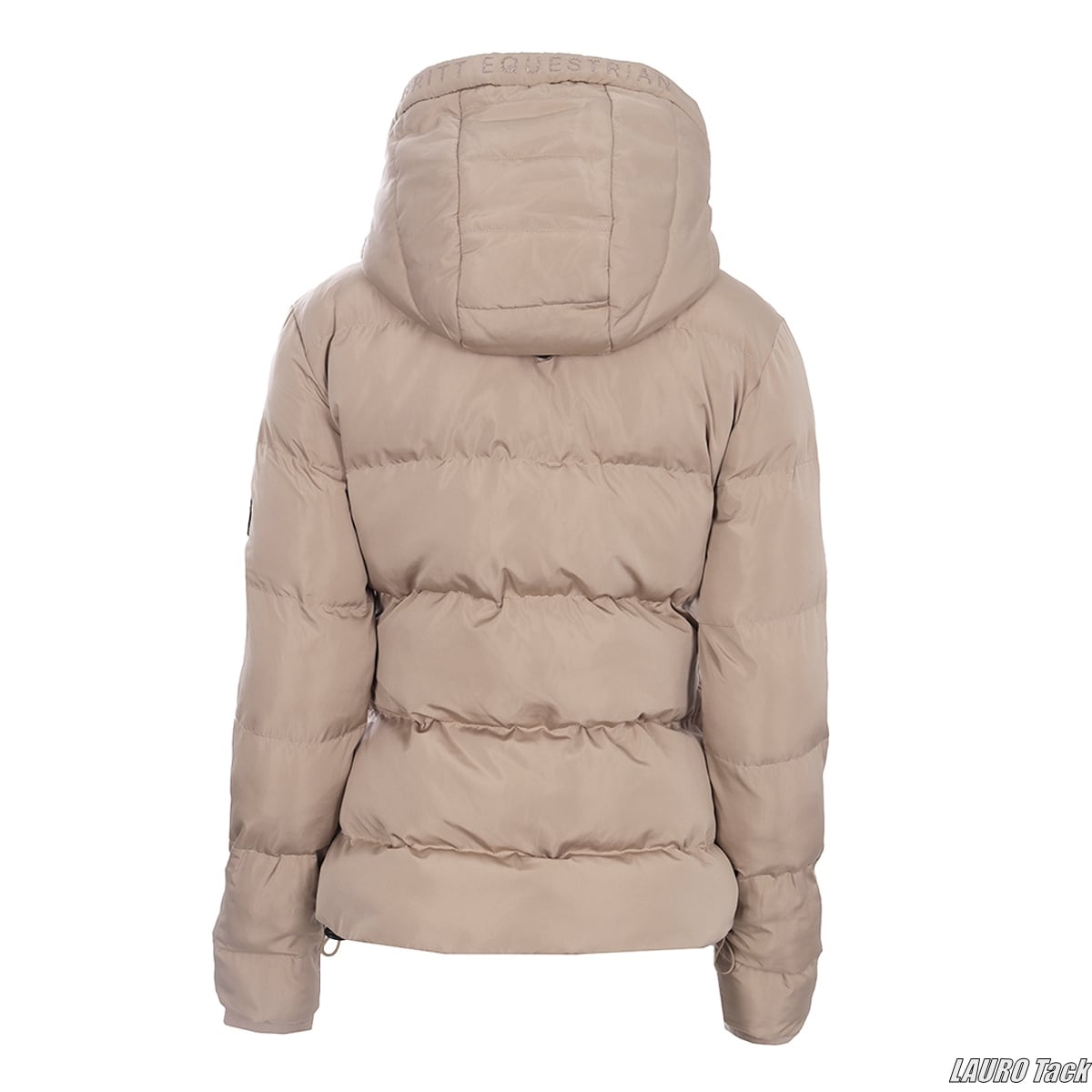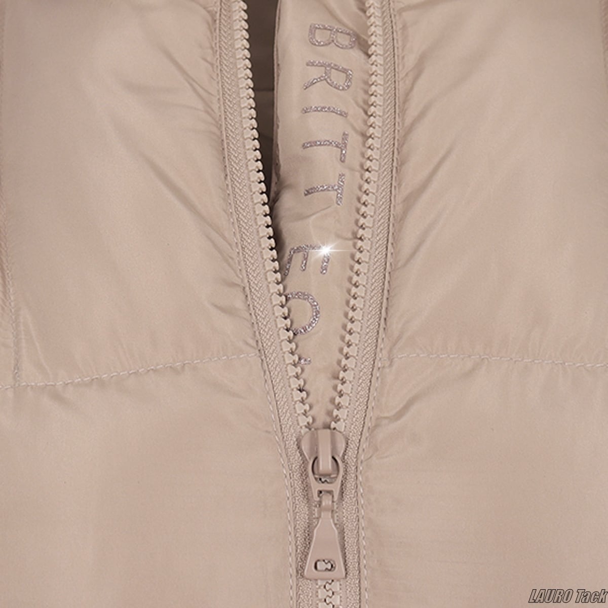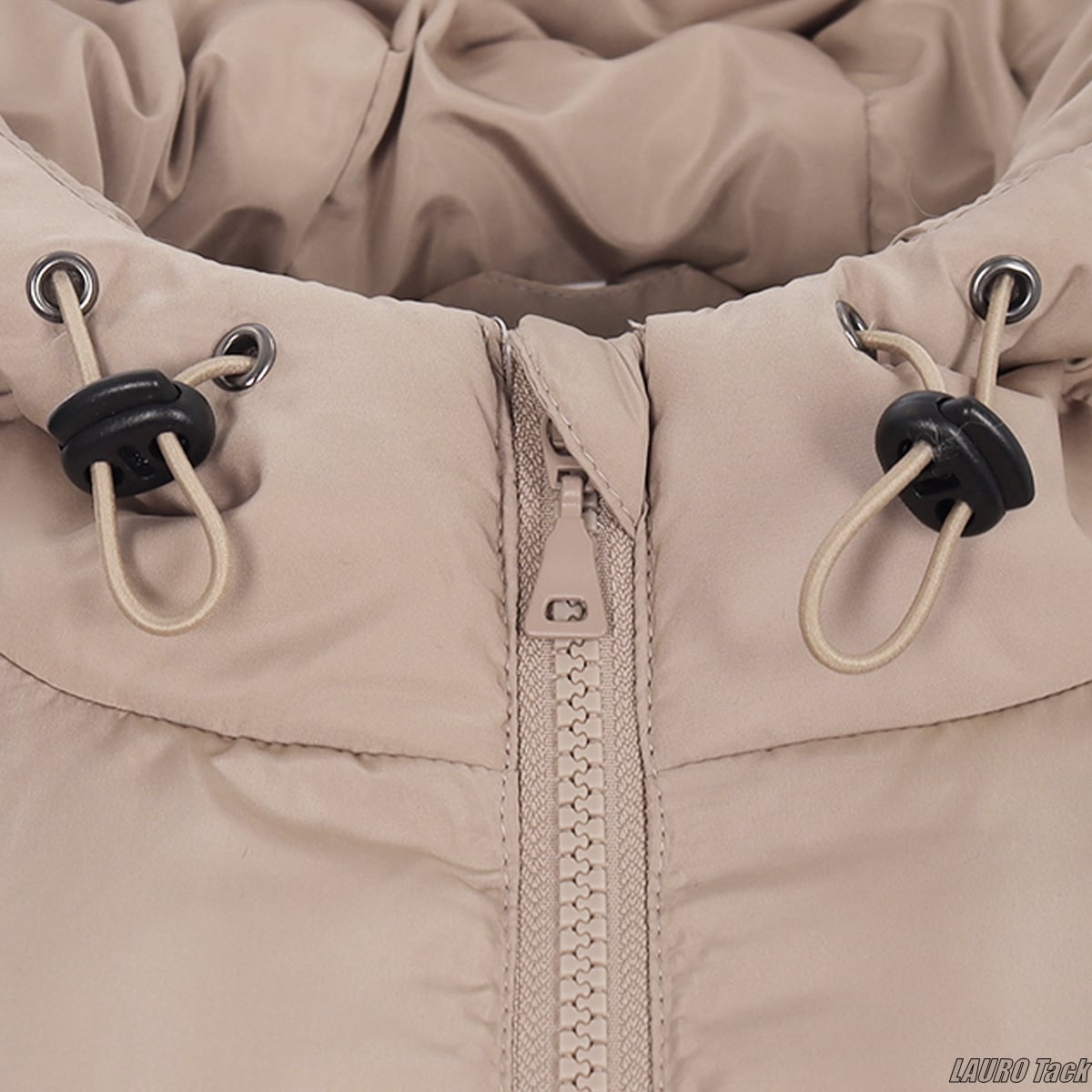 冬の装いにぴったりのレディースジャケットです。防風仕様のファスナーにはあごを守るカバーが付き冷たい風を通しません。首元のフードは背中でマグネットで留めることができすっきりとした印象に仕上がります。袖口はリブ仕上げで冷気の侵入を防ぎ裾の内側にあるコードでフィット感を調整できます。両サイドには隠しポケットを備え見た目も機能もスマート。フードや左腕のロゴに輝く装飾が添えられ冬のレッスンや通勤にも活躍します。