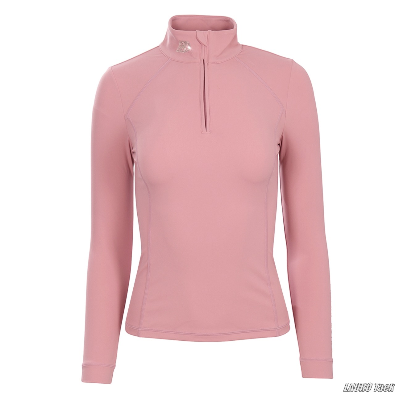 優れた着心地と動きやすさを兼ね備えたレディーストレーニングシャツです。伸縮性の高い4方向ストレッチ素材が体にやさしくフィットし動作を妨げません。首元には短い隠しファスナーがありあごを守るカバー付きです。立ち襟部分と左袖には輝くブランドロゴの装飾があしらわれています。縫い目はフラット仕様で肌への刺激を軽減し長時間の着用でも快適です。冬のレッスンやウォームアップにぴったりの上質な一枚です。