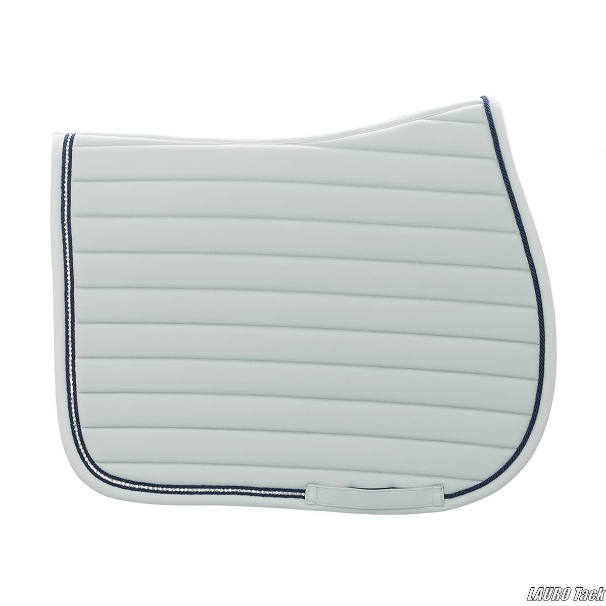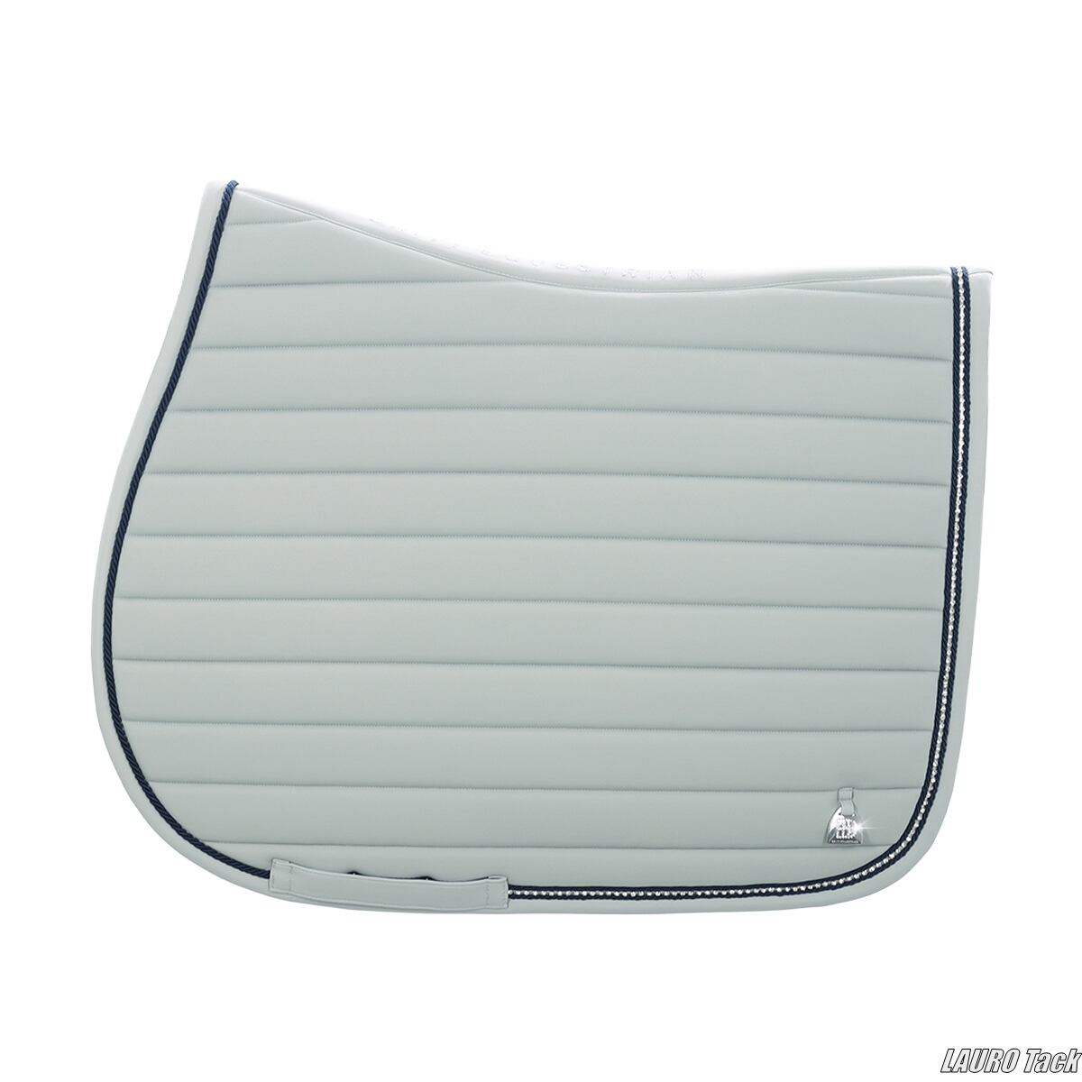 コットンと竹繊維の裏地を採用した障害用ゼッケンです。通気性が高く馬の背中を常に快適に保ちます。中綿には厚さ10mmのフォームと200gのポリフィルを使用し衝撃吸収性を発揮します。首元に沿う形状で鞍下でも安定感があり三重構造の腹帯ループでしっかり固定できます。前縁には装飾コードを施し腹帯ループから背ラインにかけては二重のコードとストーンで仕上げられています。片側の角にはブランドバッジをあしらい高級感のある仕上がりです。