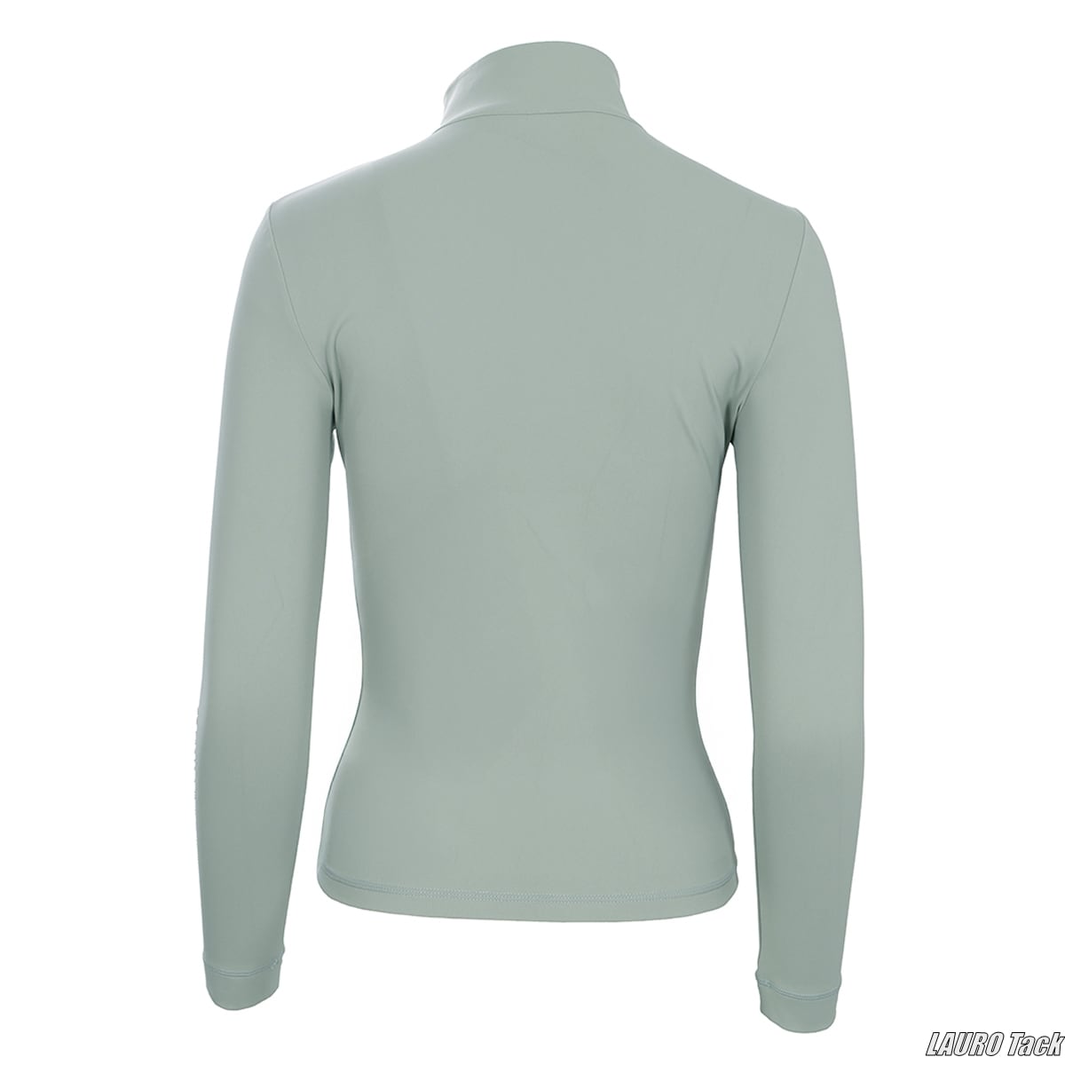 上質な着心地と動きやすさを両立したレディーストレーニングシャツです。4方向ストレッチ素材を使用し体にやさしくフィットします。短い隠しファスナーとあご保護カバーを備えた立ち襟デザインが上品な印象を与えます。左袖と襟元にはブランドロゴの装飾が施され控えめながらもエレガントな輝きを添えます。縫い目はフラット仕様で肌への刺激を抑え冬のトレーニングにも最適です。