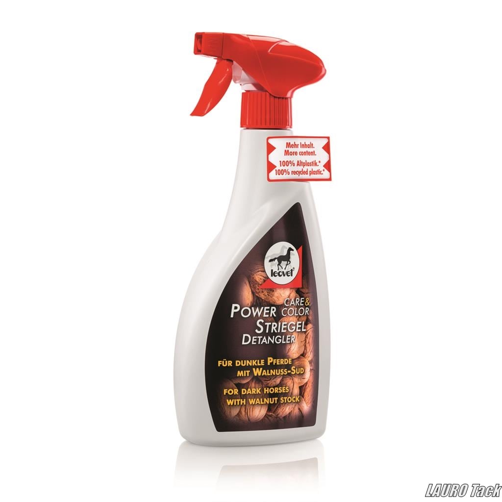 Leovet Power Walnut Anti-Klit Brown(Leovet) 黒や濃い毛色の馬に適したデタングルスプレー。ウォールナットエキスが毛色に深みを与え、紫外線による退色を防ぎます。UVプロテクト効果で日差しの強い季節にも安心。毛の絡まりを防ぎ、滑らかな手触りと上品な輝きをプラスします。植物成分が自然な潤いを与えながら皮膚を健やかに保ち、ブラッシングのしやすさを向上させます。