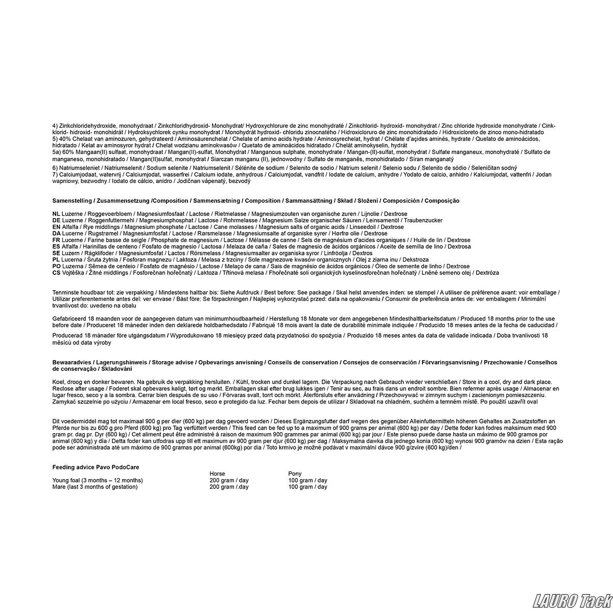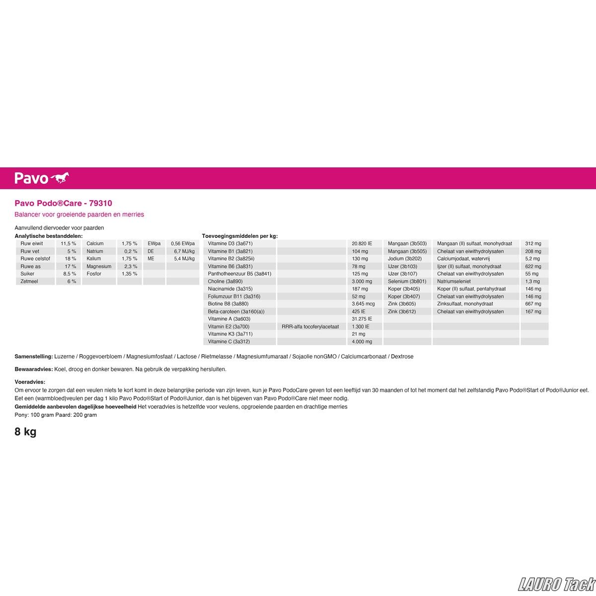 子馬が健康な馬へ成長するために重要な時期に与える栄養サプリ。特に生後12か月までの期間は脚部の関節が急速に発達するため、この時期の栄養が重要です。Pavo PodoCareは骨代謝を支えて発育を助け、30か月頃まで成長段階に応じて継続使用可能。カルシウム・マグネシウム・リンの比率を最適化し、血流を促してバランスの良い骨形成をサポートします。科学的に効果が証明されており、6kg入り。給与目安:子馬200g/日、ポニー子馬100g/日。【おすすめ】 健やかな骨と関節の発育を促したい子馬や若馬におすすめです。