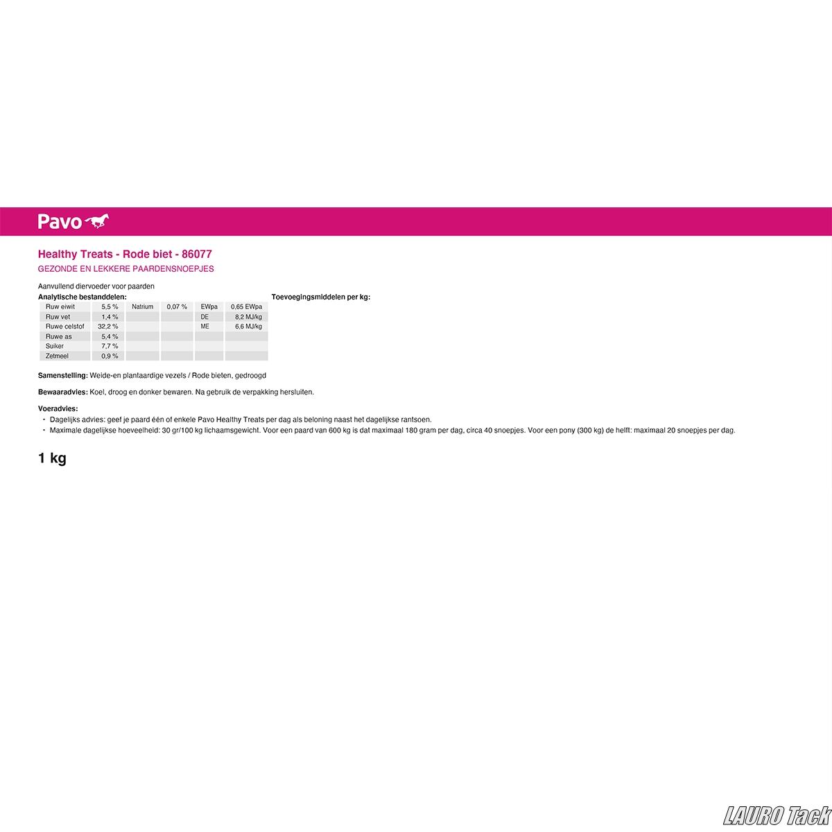 ビーツ風味の健康的なおやつ。Pavo Healthy Treats Beetrootは100%天然原料を使用し、穀物や人工添加物を一切含まない低糖・低でんぷんレシピ。代謝トラブルや体重管理中の馬にも安心して与えられます。嗜好性が高く、日々のトレーニングやケアのご褒美に最適。最大摂取量は体重100kgあたり30gまで、開封前で24か月保存可能。【おすすめ】 ダイエット中でも安心して与えられる、健康的なご褒美おやつとしておすすめです。