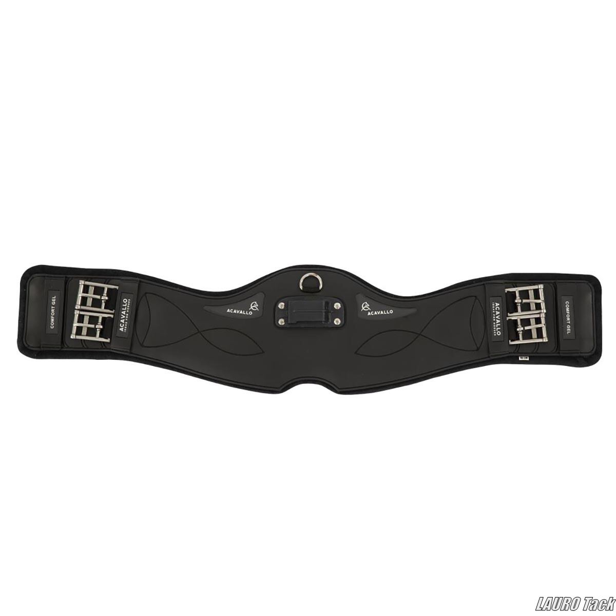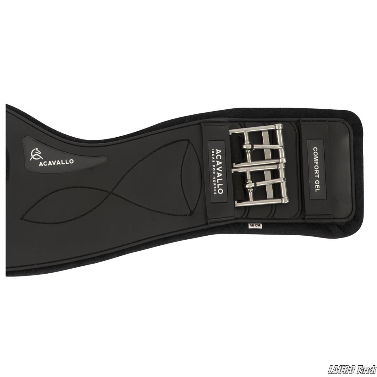 馬場鞍用の腹帯。やわらかいジェル素材(Comfort Gel)を使用し、馬の腹部をやさしく包みます。立体構造で圧迫を減らし、通気性の高いパッドが快適さを保ちます。両側ゴムでフィット感がよく、中央の金具には補助具を装着可能。ステンレス製バックルで着脱がスムーズ。