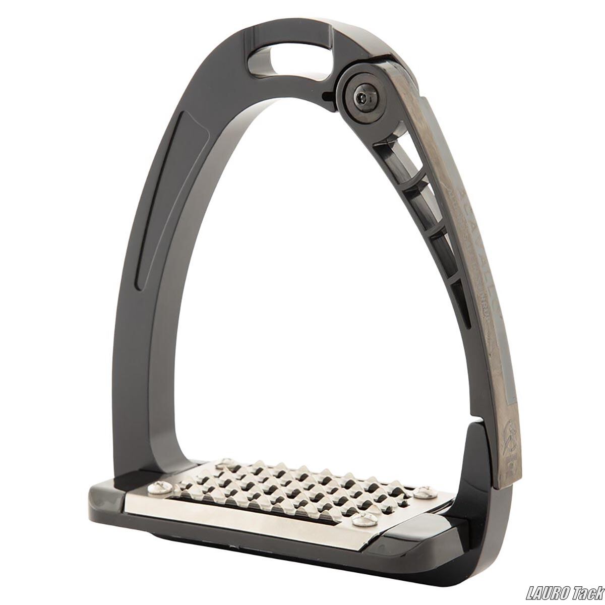 ジュニアライダー向けの軽量アルミ製安全鐙。落馬時に外側が自動で開く安全構造で、足が引っかからず安心です。足が抜けると自動で閉じる仕組み。滑り止め付きのステンレス踏み面が高い安定性を提供し、かかとを自然に下げやすい角度設計。左右セット。
