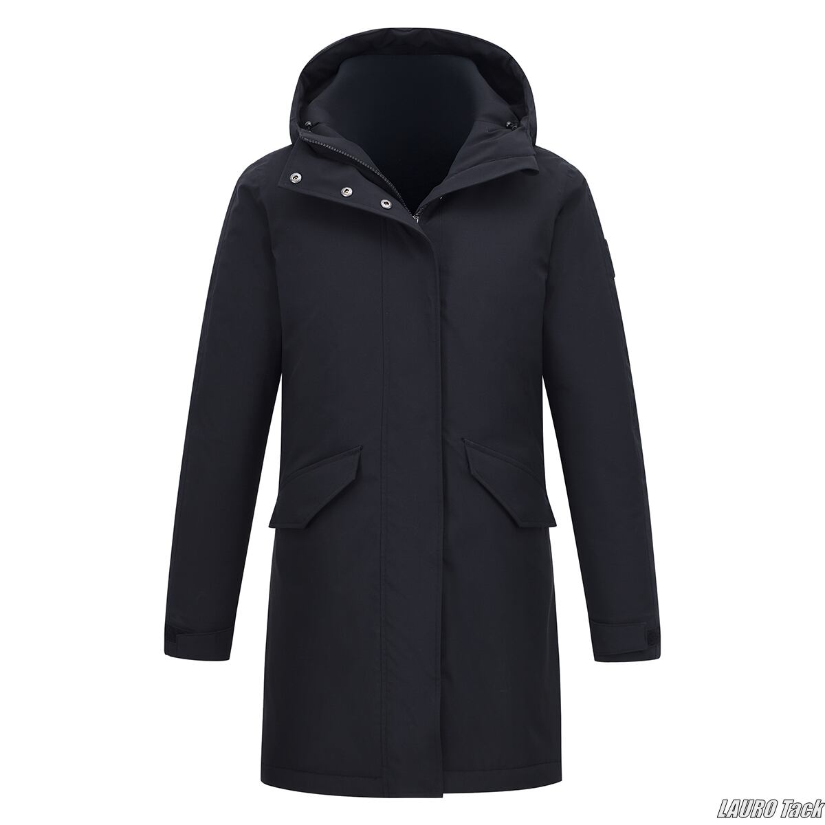 防水性と通気性を兼ね備えたロングパーカーコート。外側はTPUコーティングを施したポリエステル素材で、防水8,000mm・透湿1,000mmの高機能仕様。すべての縫い目を防水テープで処理し、雨風をしっかりシャットアウトします。内側は取り外して単独でも使える豪華な裏地付き。2WAYファスナーや裾のスリットで動きやすく、袖口の調整ベルトと高い襟が防寒性を高めます。フードはドローコードで調整可能、背面で固定もできる実用的なデザインです。
