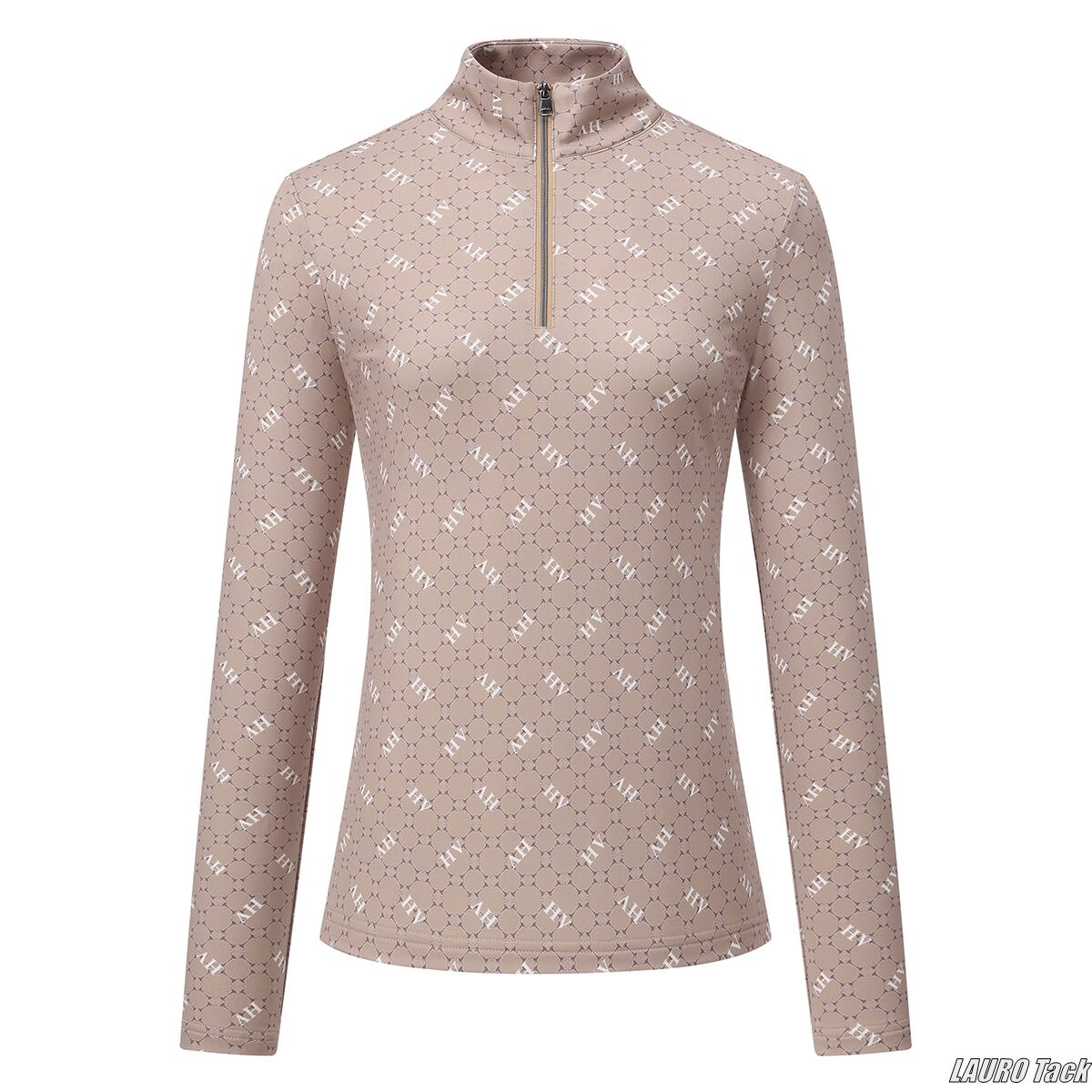 上品で温かみのあるベージュトーンのトレーニングシャツ。UVカット機能付きのストレッチ素材を使用し、通気性・吸湿速乾性にも優れています。内側はふんわりとした起毛フリースで、柔らかく暖かい着心地。首元のショートファスナーと立ち襟デザインが美しいシルエットを演出します。