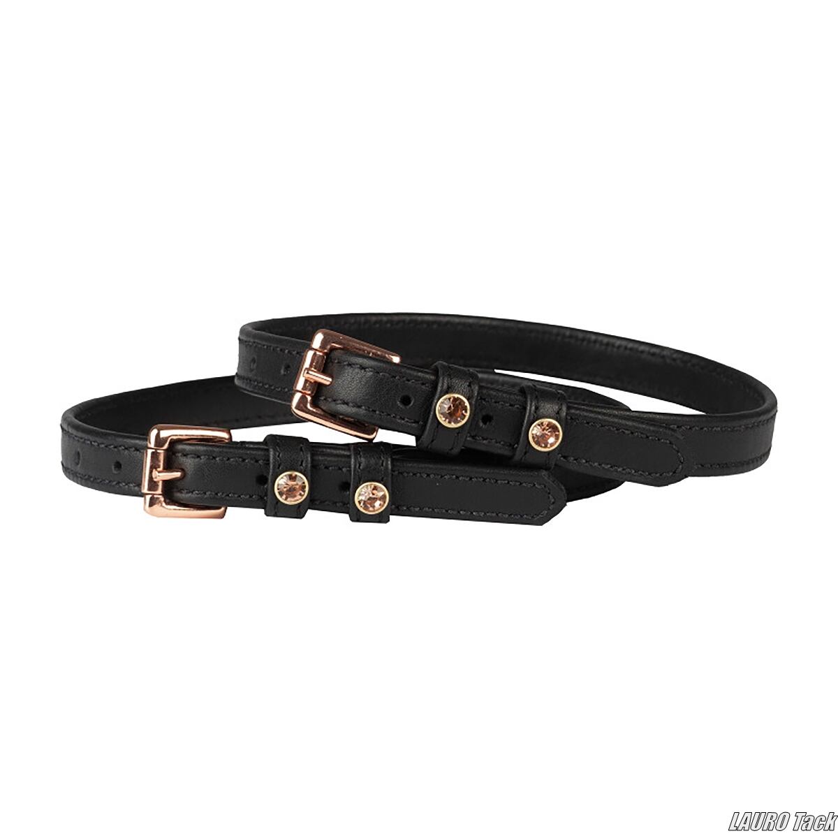 柔らかいレザーを使用した上品な拍車ベルト。ローズゴールドのクリスタルと金具が美しく輝き、洗練された印象を演出します。ペア販売で、どんな装いにも華を添えるアクセサリーです。
