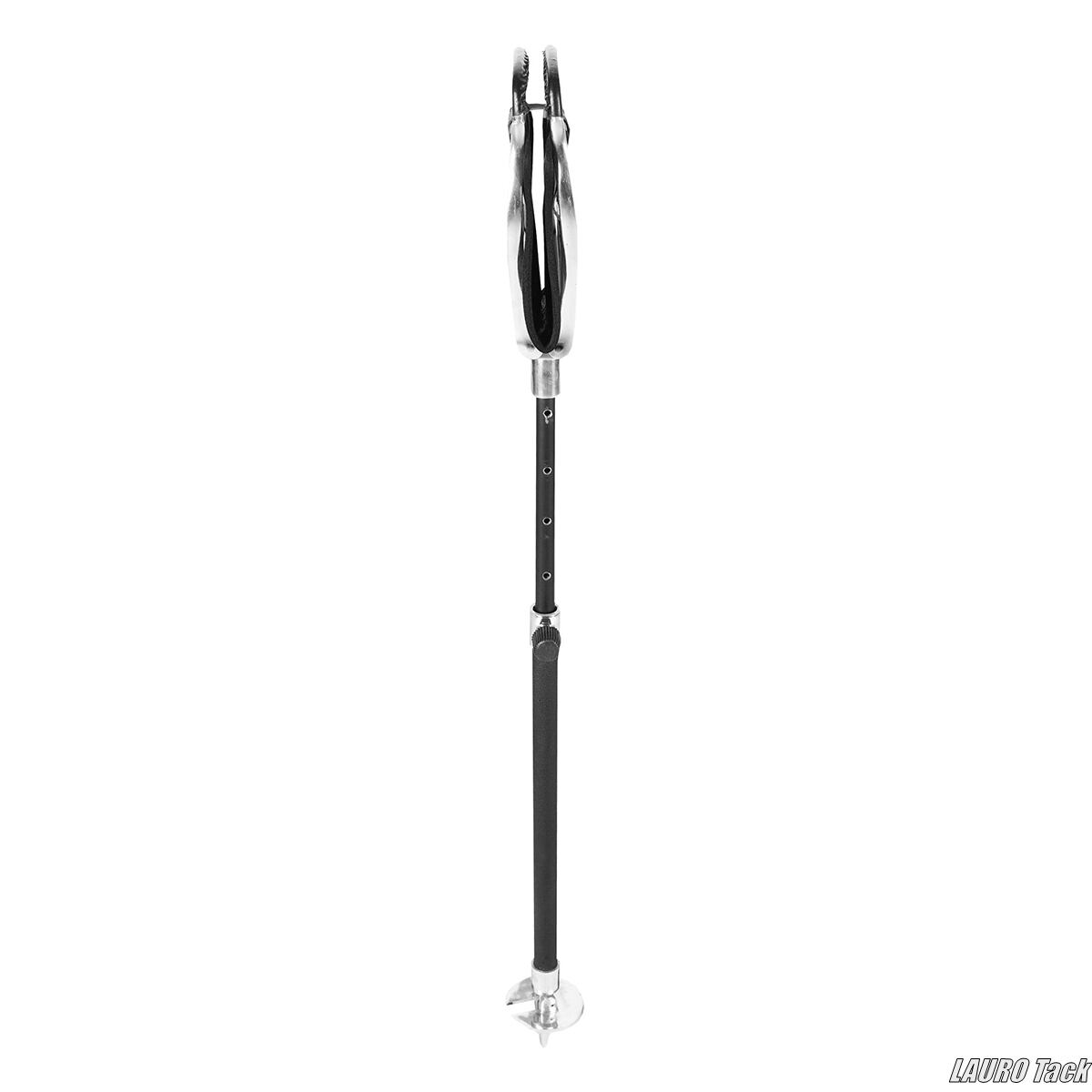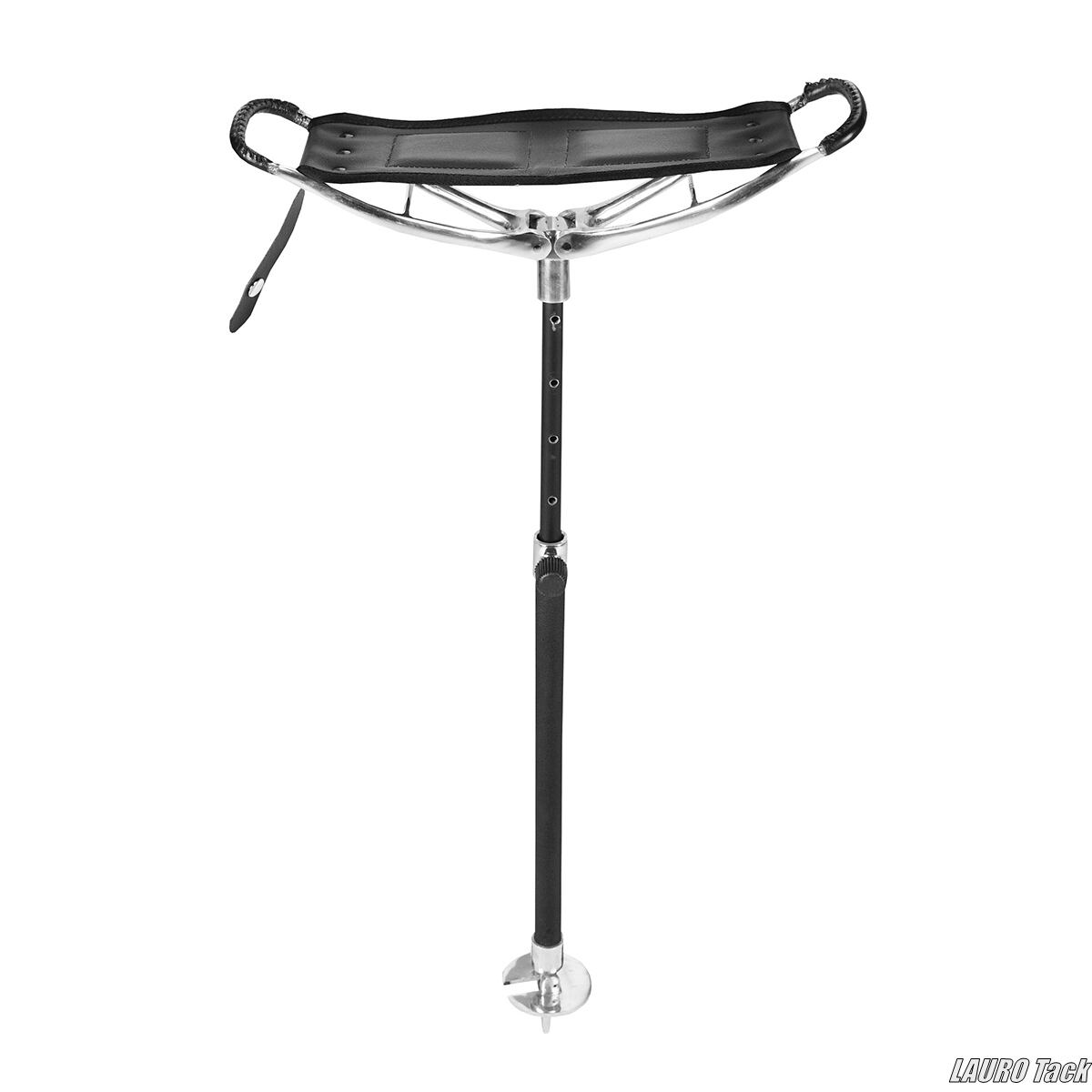 アルミ製の軽量なスティックにレザーシートを組み合わせた、折りたたみ式の携帯スツール。高さは54~74cmに調節可能で、最大耐荷重は85kg。座面は32cm幅の本革製で、持ち運びや観戦時にも便利な設計です。