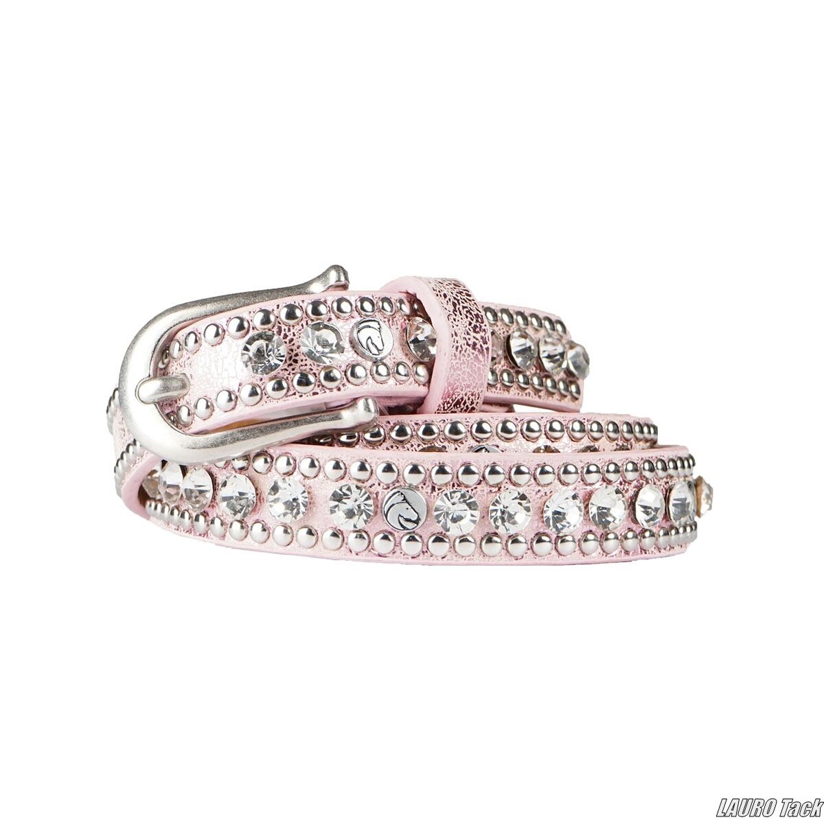 合成皮革を使用した上品なベルト。シルバーとメタル調のスタッズをあしらい、数か所にHorkaの馬モチーフを配置。バックルを除いた中央穴基準でサイズ計測されており、85cmサイズは80・85・90cm位置に穴があります。幅1.8cm、バックル長3cm。華やかなダークピンクがスタイルのアクセントになります。