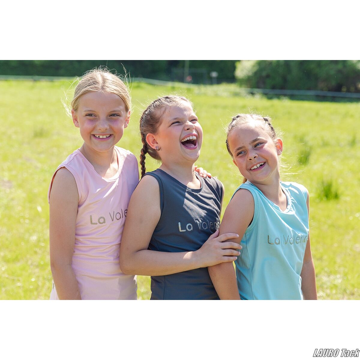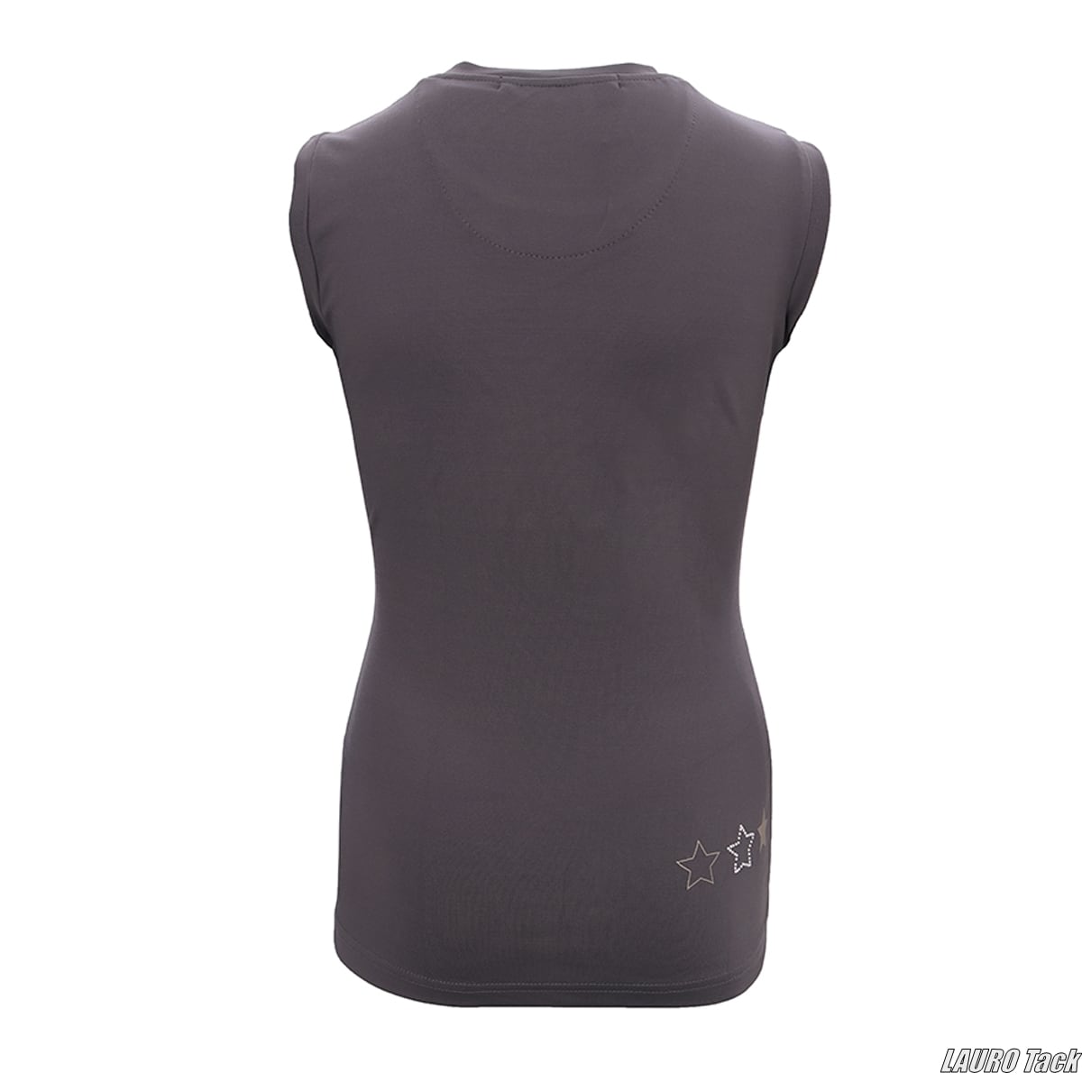 柔らかく乾きやすい素材を使ったキッズ用ノースリーブトップ。淡い色合いで爽やかに着られ、胸元のロゴと背中の星モチーフがアクセント。暑い季節の騎乗や普段使いにぴったり。