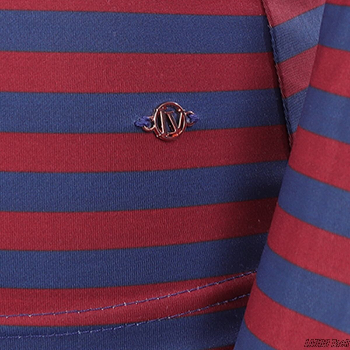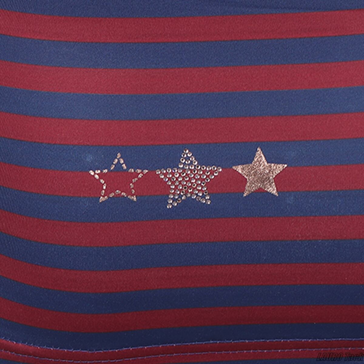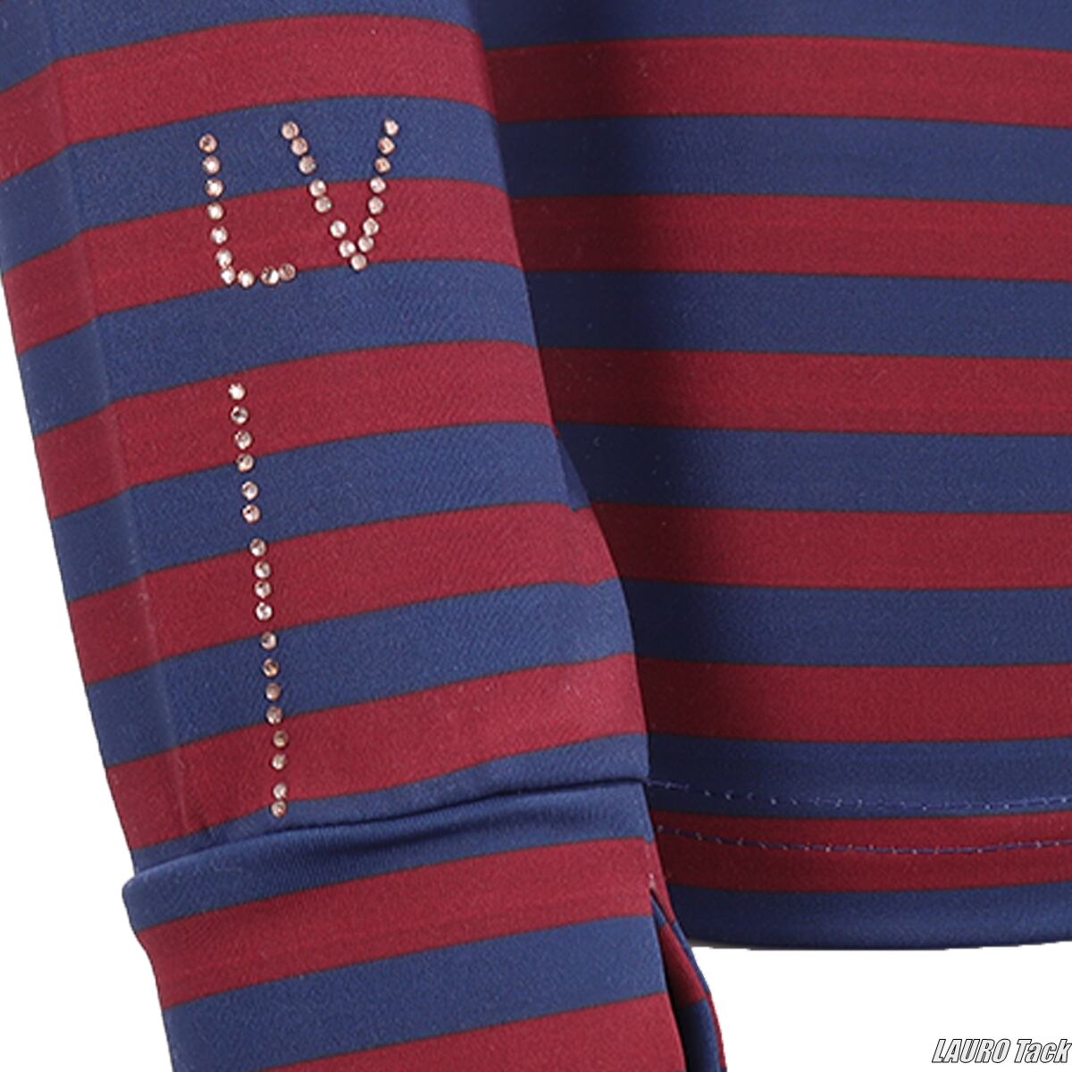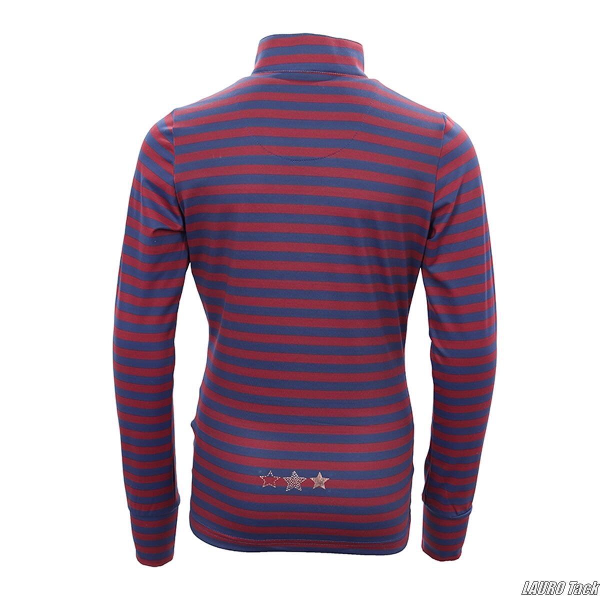 ストライプ柄が印象的なキッズ用トレーニングシャツ。動きやすいストレッチ素材で、通気性・速乾性も優秀。短めファスナーの立ち襟と親指ホール付きの袖口で実用性も高く、ローズゴールドのアクセントがポイント。