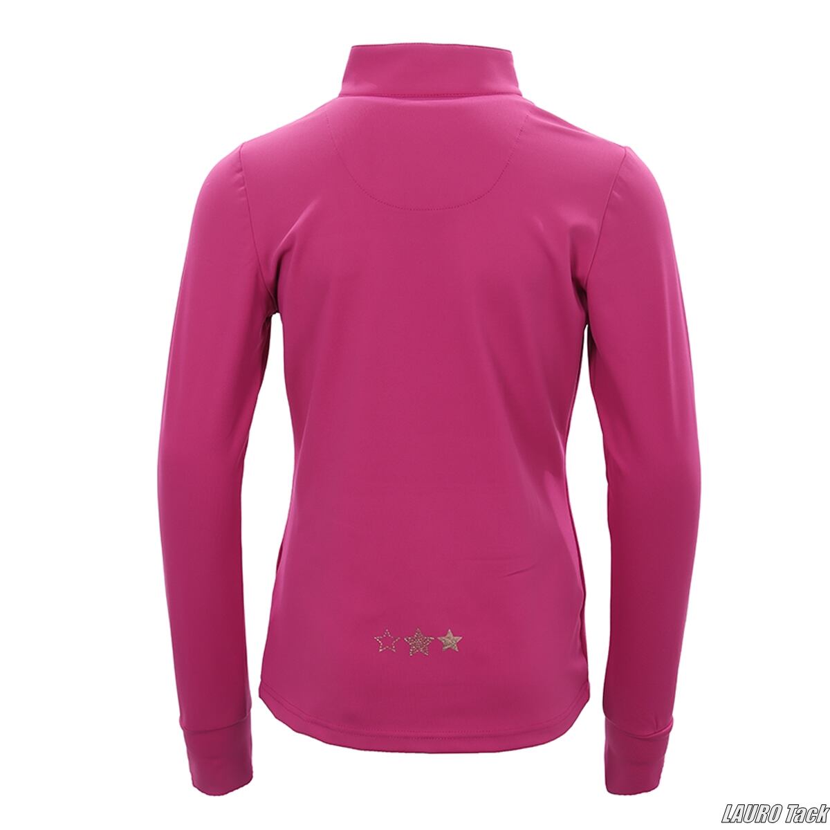手をあたためるフリース裏地のカンガルーポケットが特徴のキッズ用トレーニングシャツ。4WAYストレッチ素材で動きやすく、通気性・速乾性も良好。短いファスナーの立ち襟、サムホール、ローズゴールドのディテールで機能性と可愛さを両立しています。