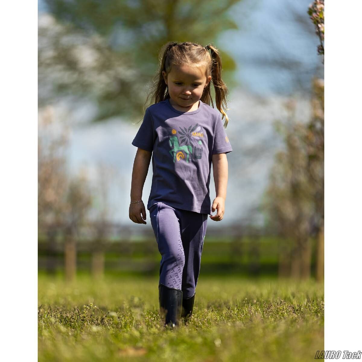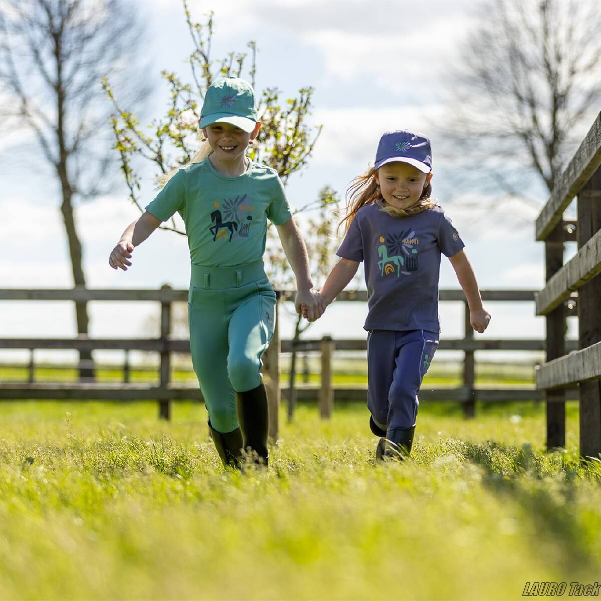 柔らかなコットン素材で快適に着られるキッズTシャツ。今っぽい雰囲気のデザインと大きなロゴがアクセントになり、ラウンドネックで動きやすさも十分。厩舎でも日常でも使いやすく、同シリーズのアイテムと合わせると統一感のあるコーデが完成します。