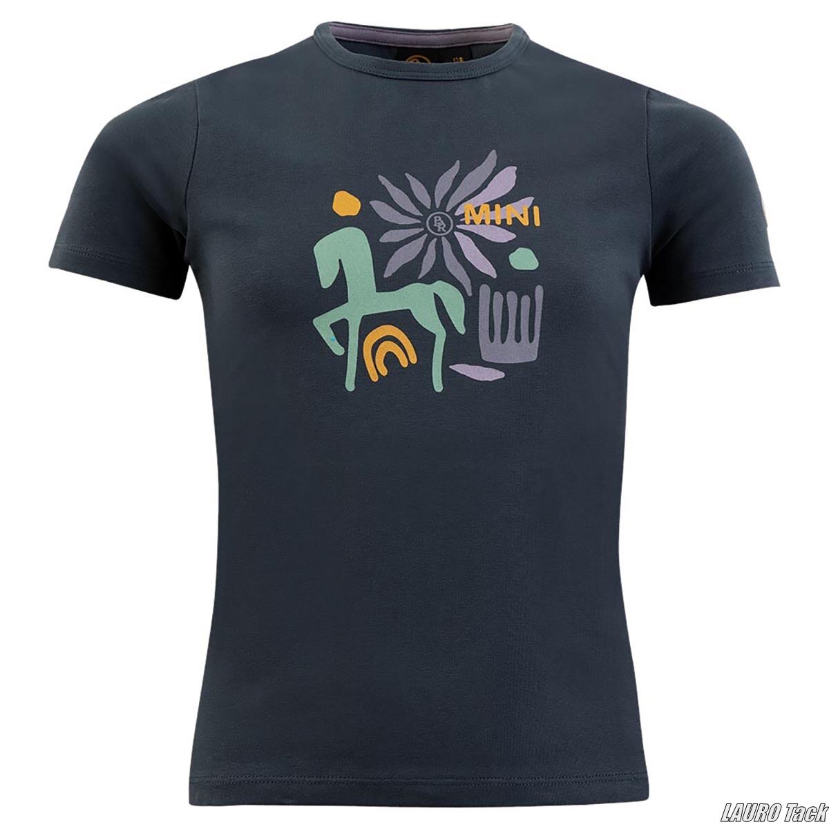 落ち着いたカラーとトレンド感のあるデザインが特徴のキッズTシャツ。ソフトなコットン素材で着心地が良く、ラウンドネックの快適なシルエット。大きなロゴが胸元に映え、普段使いにも厩舎でも自然に馴染む一枚です。