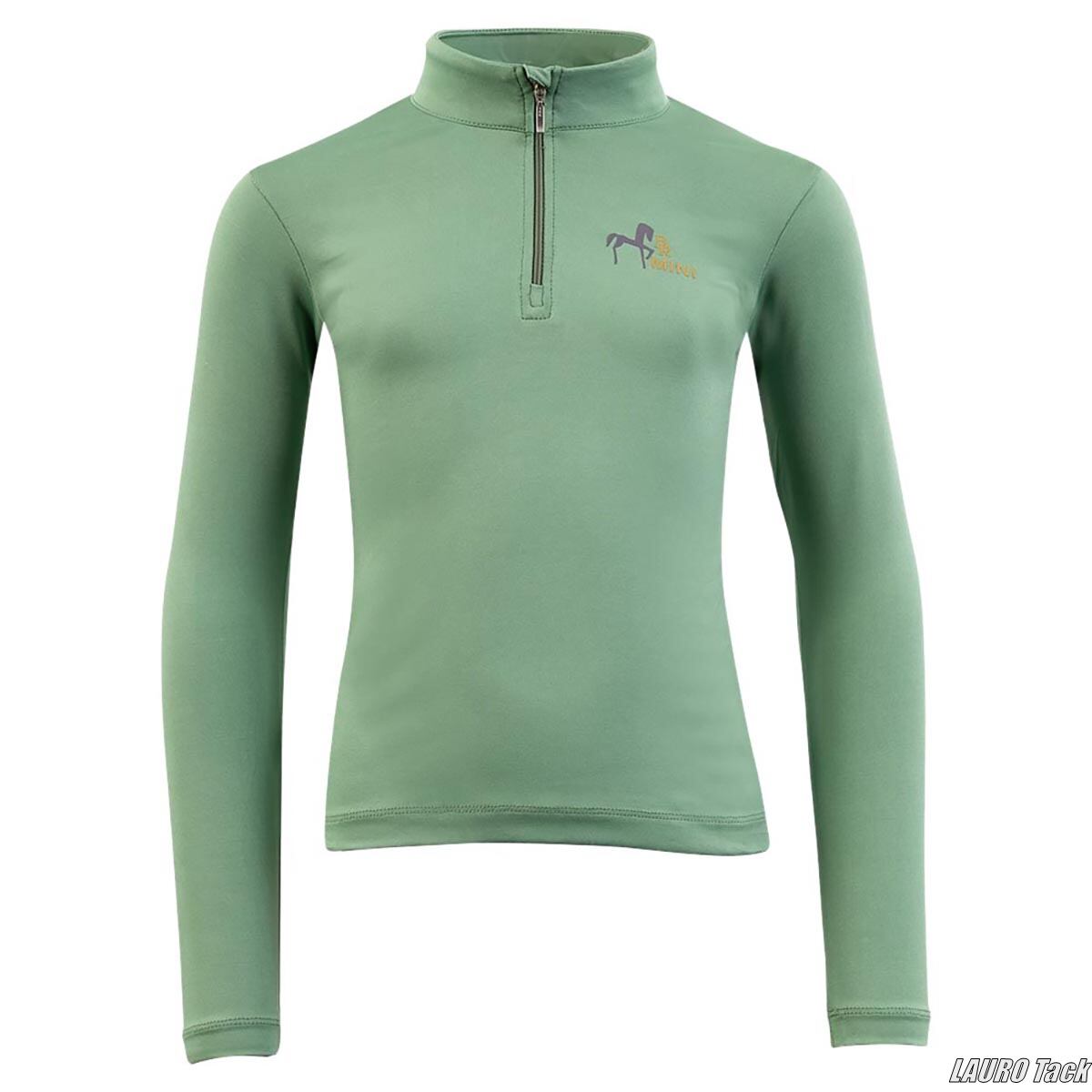 子どもの動きをしっかりサポートする長袖トレーニングシャツ。伸縮性と通気性のある素材で、騎乗時やアクティブな場面でも快適。ショートジップにはチンガード付きで安心感があり、同シリーズとの組み合わせも相性抜群です。