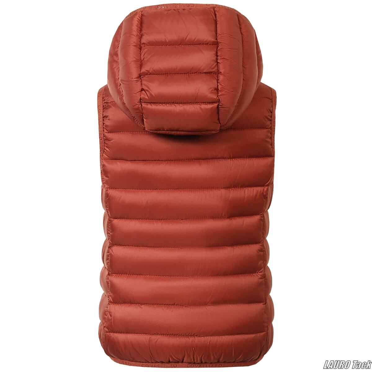 暖かく軽い着心地のキッズ用ボディウォーマーで、内側にはフェイクダウンのパディングを採用。フードは取り外しでき、後ろのボタンで留めることも可能です。左右の中綿入りジップポケットが便利で、前は動きやすい2-wayファスナー仕様。裾は伸縮タイプで、30℃で洗濯できます。