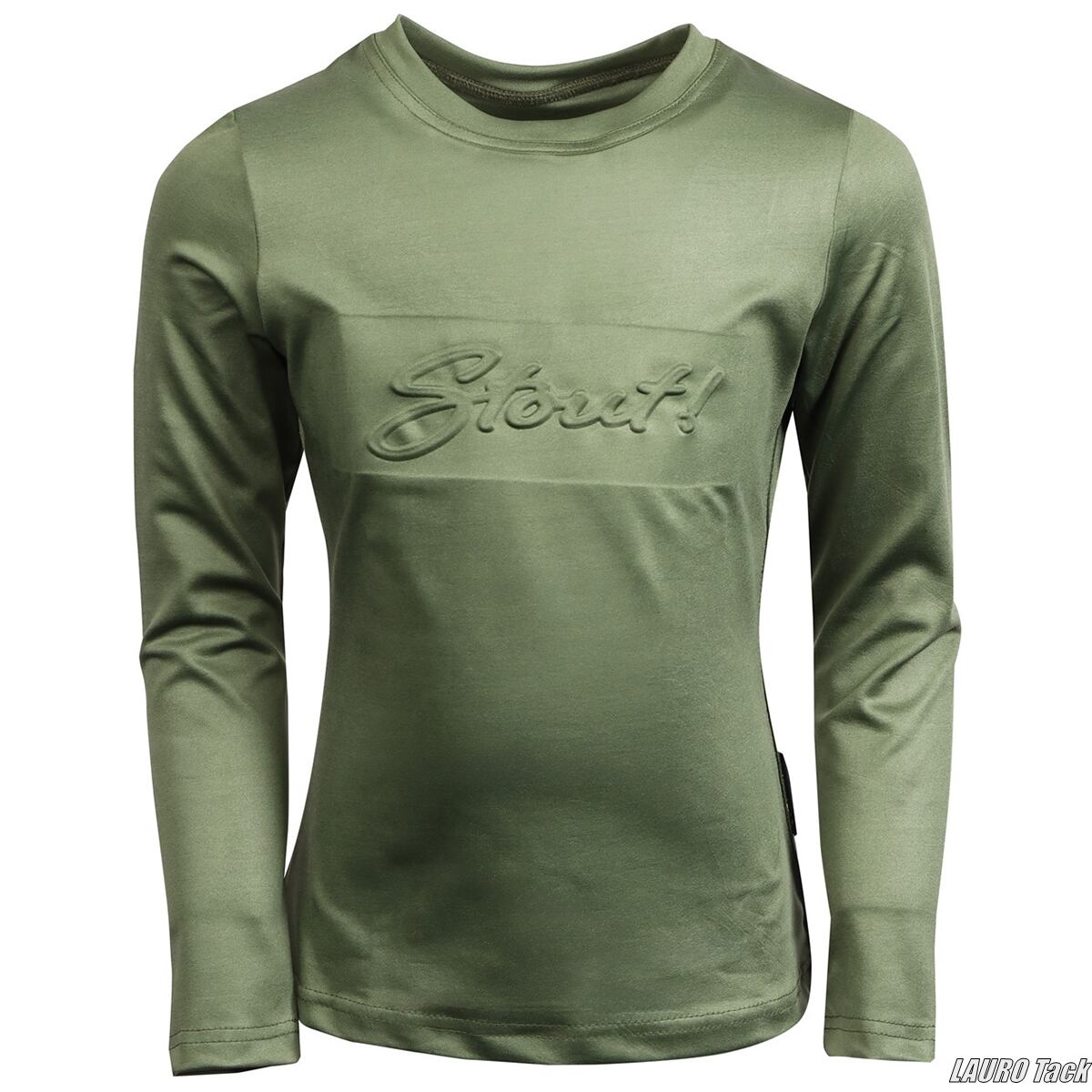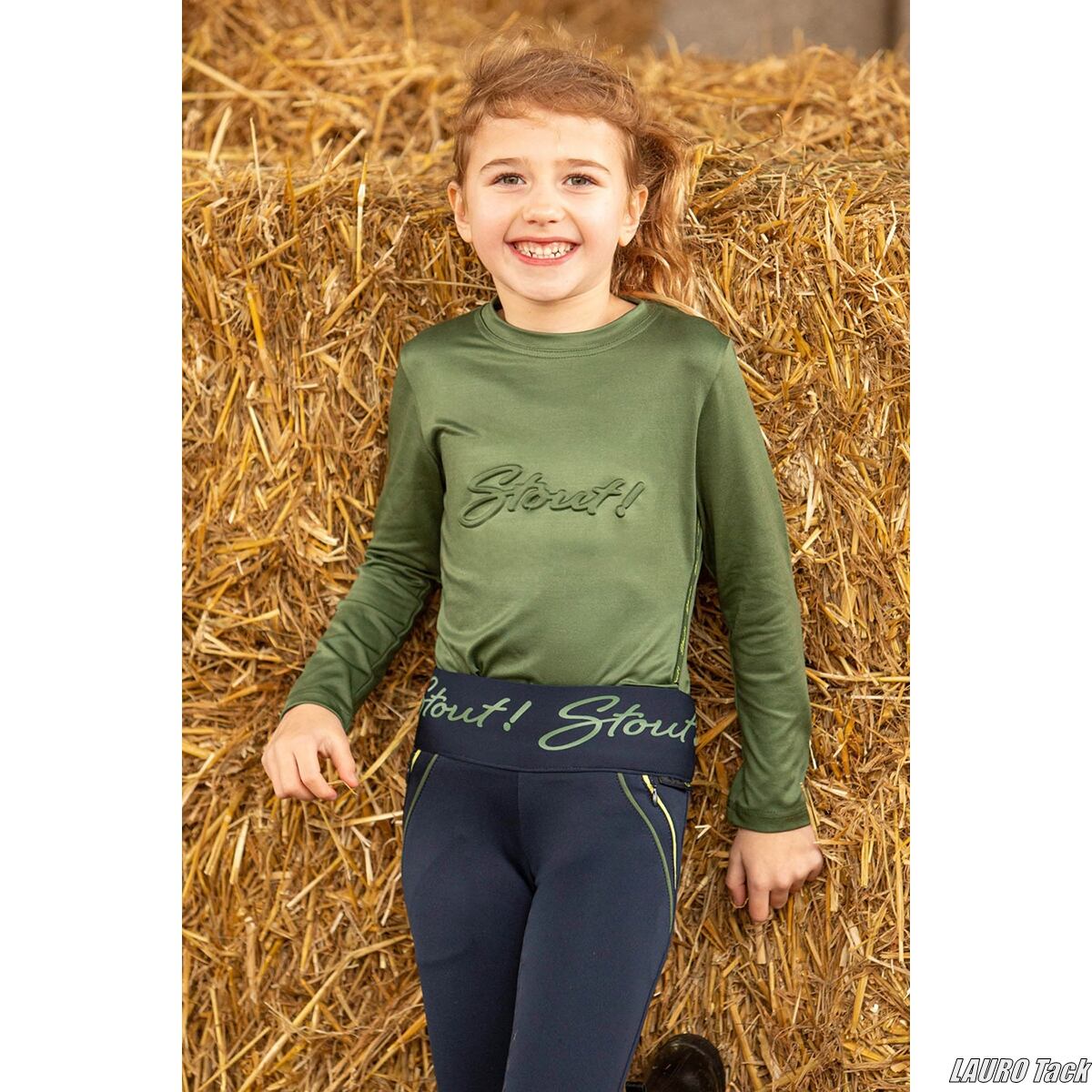 鮮やかなグリーンが目を引くキッズ用ロングスリーブトップスです。柔らかな素材で肌触りがよく、肌寒い季節のレッスンや外遊びにぴったりです。胸元とサイドラインにはSTOUT!のロゴがあしらわれ、同シリーズのタイツとのコーディネートも楽しめます。