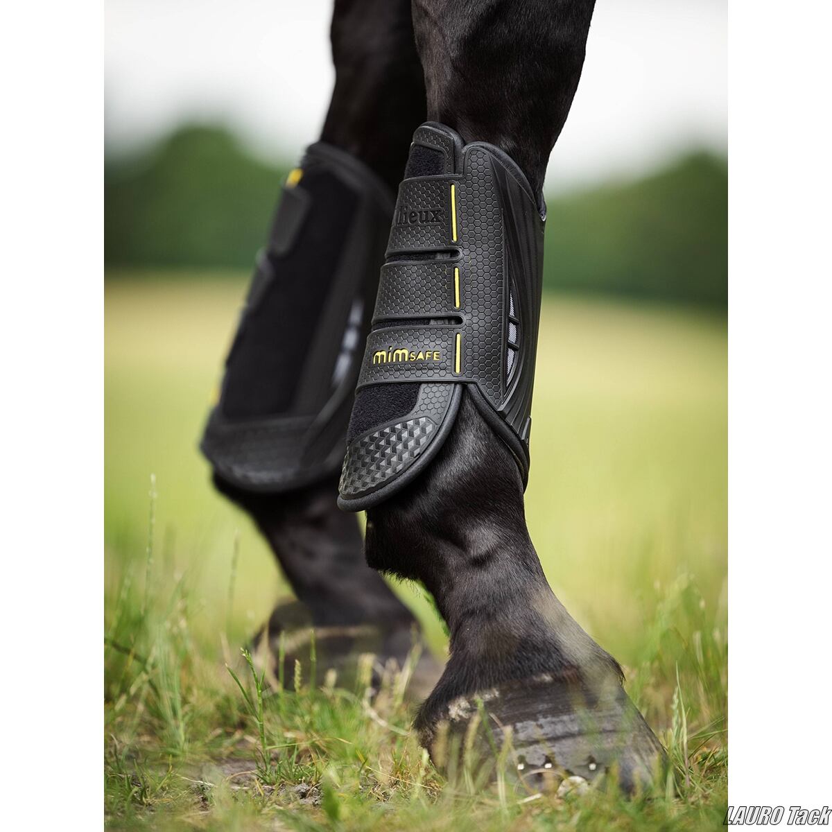 LeMieux「MIMsafe XC」ブラッシングブーツ(前肢用)は、MIMclip開発元のMIMsafe社との共同開発によるクロスカントリー専用モデルで、ノックや衝撃から強力に脚を保護します。独自のV字シェイプと流線型デザインによる高い密着性を備え、耐久性が高く軽量で摩擦も少ない構造です。過酷な競技環境でも安定したフィット感と快適性を提供します。