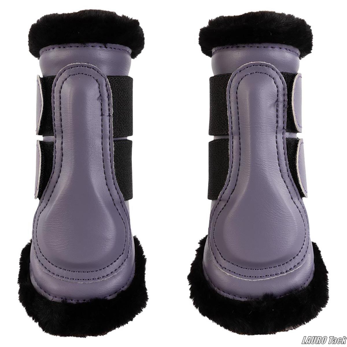 BR「Mini Horse Majestic」ブラッシングブーツは、ミニホース向けコレクションの柔らかい脚用プロテクターで、ふんわりとしたフェイクファーの裏地が快適な着用感を生みます。外装は耐久性に優れたPVC(硬質で丈夫な合成樹脂)製でしっかり脚を保護し、強力な面ファスナーで騎乗中もズレにくい設計です。トップの面ファスナーにはBR Miniロゴが入り、同コレクションのアイテムと揃えて使いやすいデザインです。