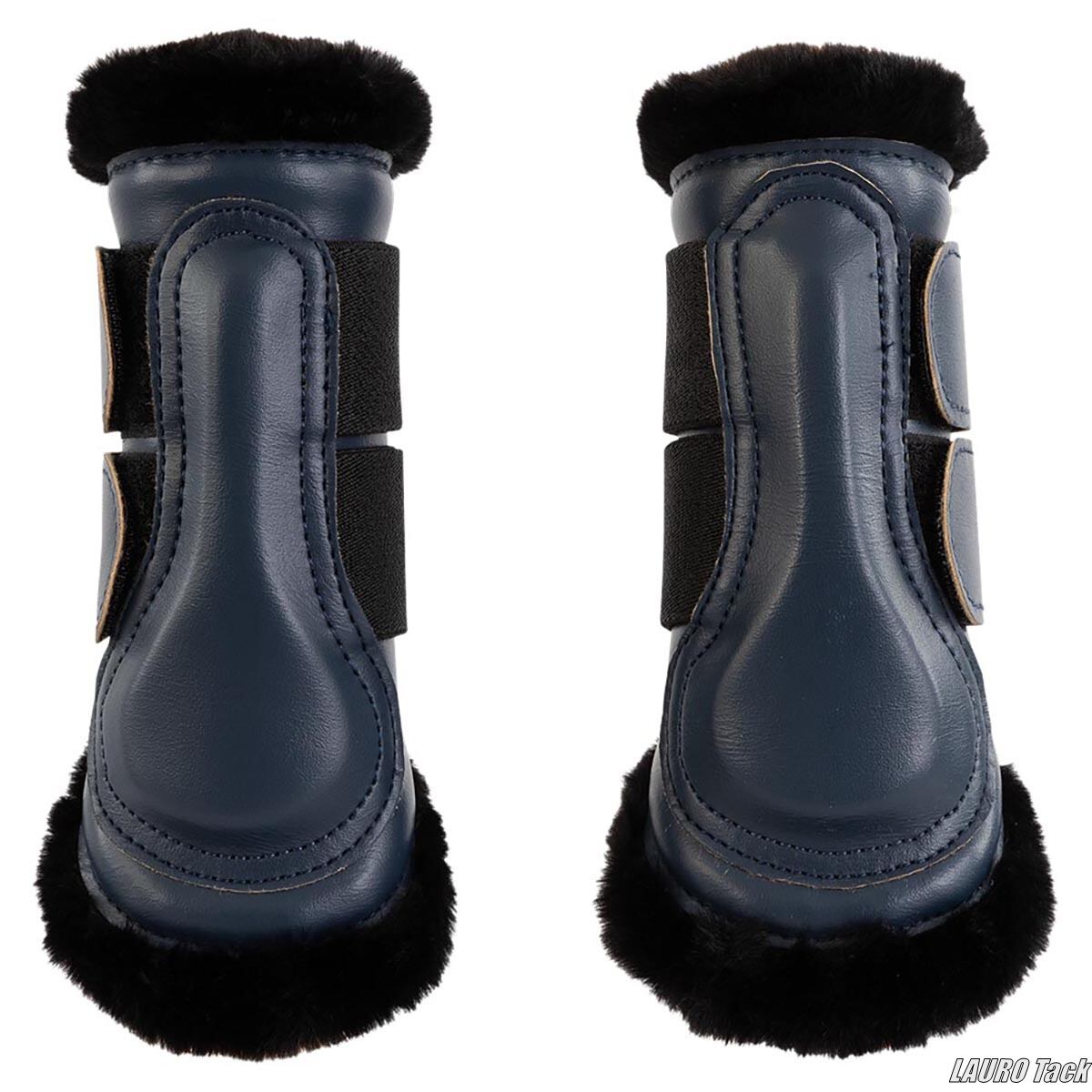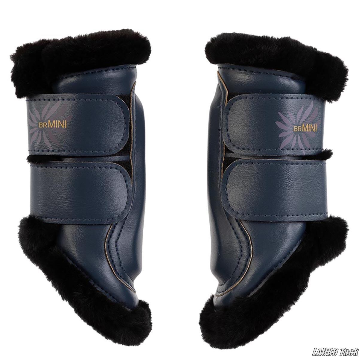 BR「Mini Horse Majestic」ブラッシングブーツは、ミニホース向けコレクションの柔らかい脚用プロテクターで、快適なフェイクファー裏地を備えています。外装には耐久性の高いPVC(耐摩耗性に優れた合成樹脂)を採用し、騎乗時の脚をしっかり保護します。強力な面ファスナーで安定して固定でき、トップ部分にはBR Miniロゴ付き。シリーズ内の他アイテムと統一感あるコーディネートが可能です。