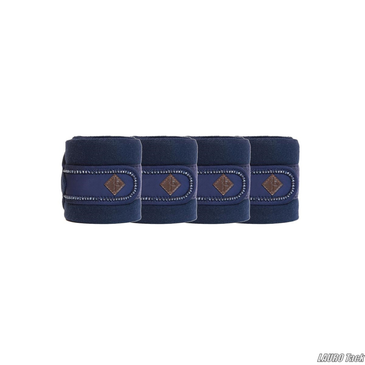 KentuckyのPolar Fleece Pearls肢巻き(ダークブルー)は、280g/m²の高品質フリースで、柔らかく通気性が良い仕様。ベルクロ部分にパール装飾を施した華やかなデザインで、アンチピリング加工済み。325×12cm、4本セット(ジッパー付きバッグ入り)。30℃で洗濯可、乾燥機不可。