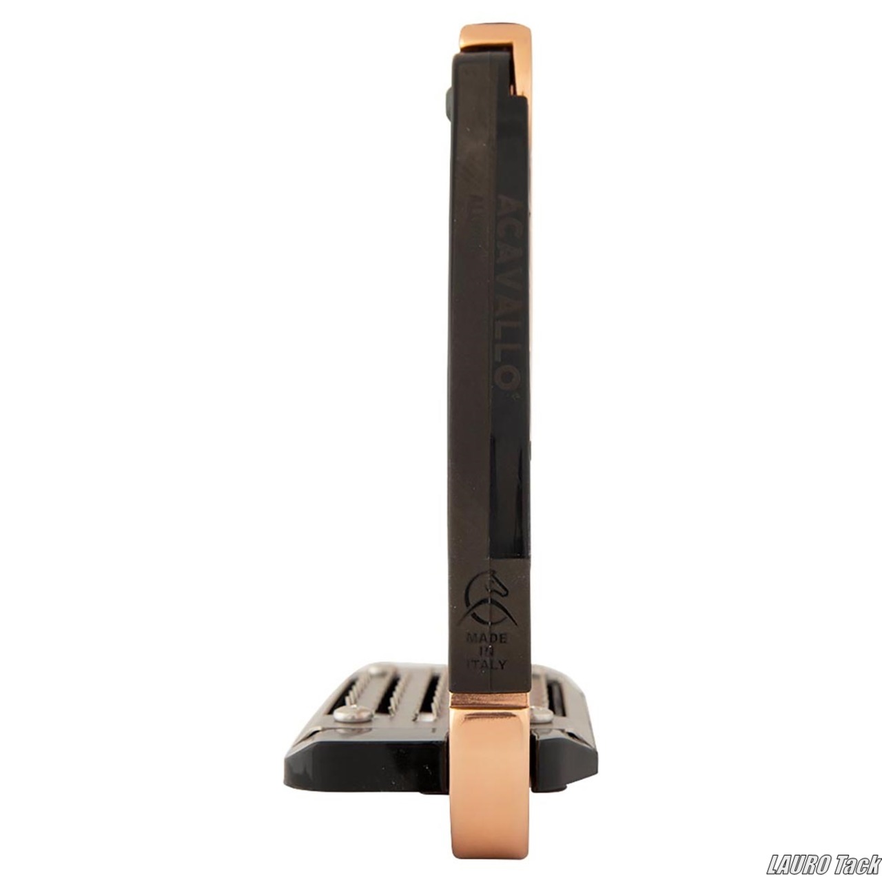 ヒンジ式の安全機構と小型フットストッパーを備えたジュニア向け安全鐙です。ライダーの体重がかかることで落馬時に鐙が開き、足が引っかかるのを防ぎます。踏み面にはステンレス製の幅広ソールを採用し、細かな凹凸により高いグリップ力を発揮します。斜めに設計された吊り下げ構造が鐙の位置を安定させ、足を正しい位置に保ちます。必要なときのみ作動する安全機構により、安定性と安全性を両立した設計です。
