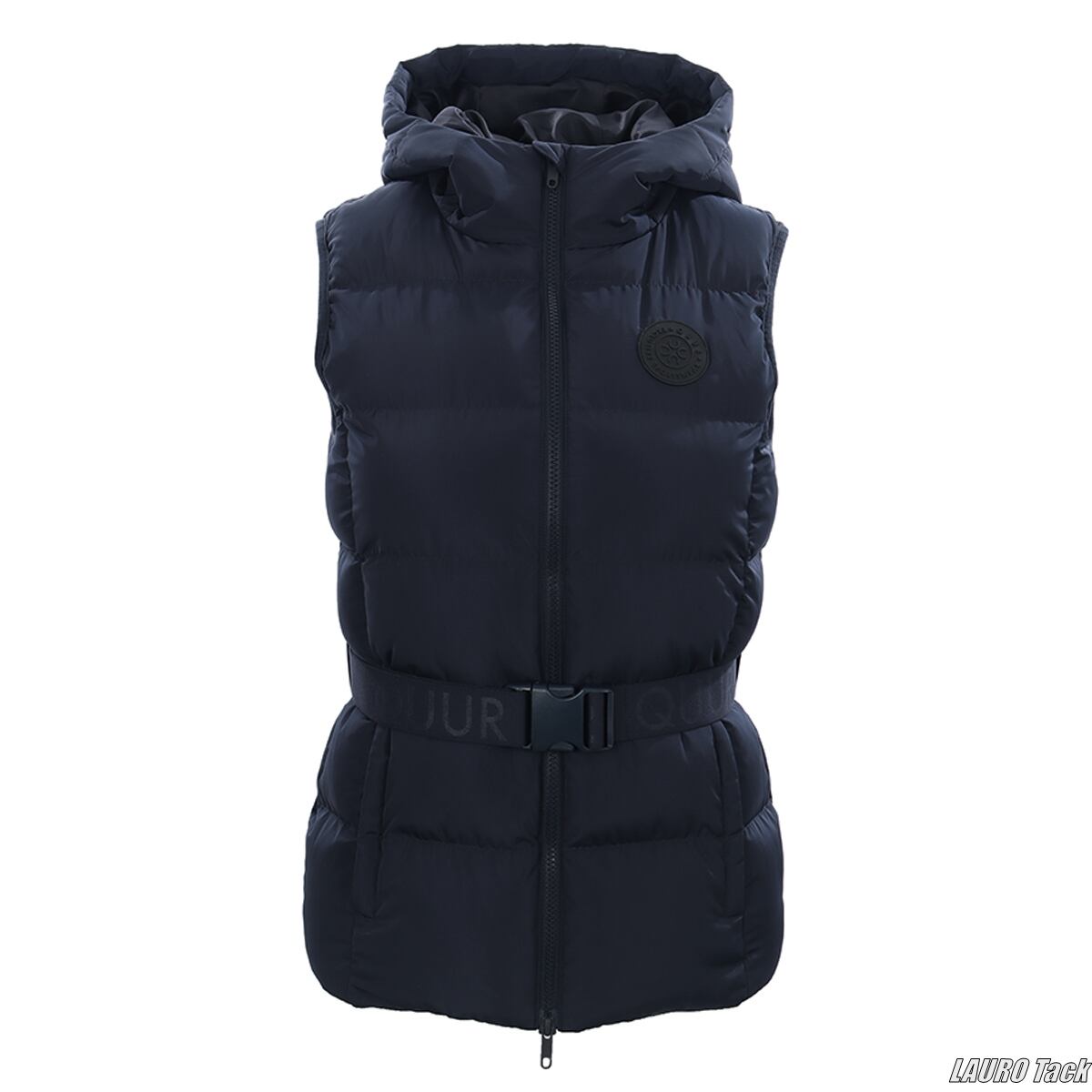 上品で女性らしいシルエットが魅力のボディウォーマーです。トレンド感のあるキルティングと、体にフィットする伸縮性のあるウエストデザインで、すっきりとした印象に仕上がっています。軽量でやわらかな中綿入りで、内側はなめらかな総柄ライニング仕様。フードは背中側でマグネット固定が可能で、騎乗時も邪魔になりません。上下どちらからも開閉できる2wayファスナーや内側の風よけ、ファスナーポケットなど、実用性にも優れています。