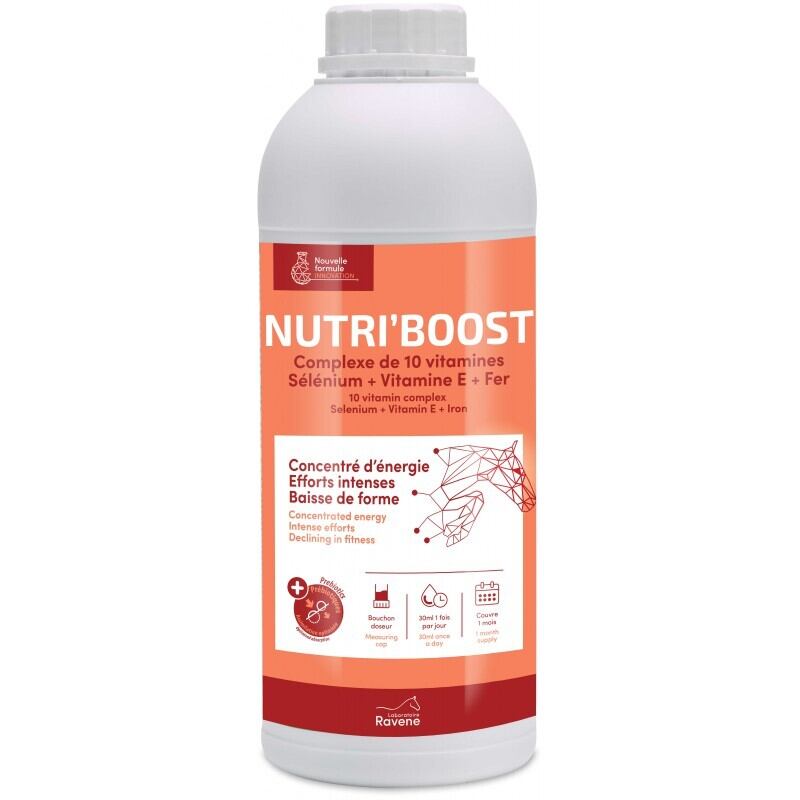 RAVENE Nutri-Boost は、運動後や負荷がかかったタイミングに与えることを想定した、液体タイプの馬用サプリメントです。