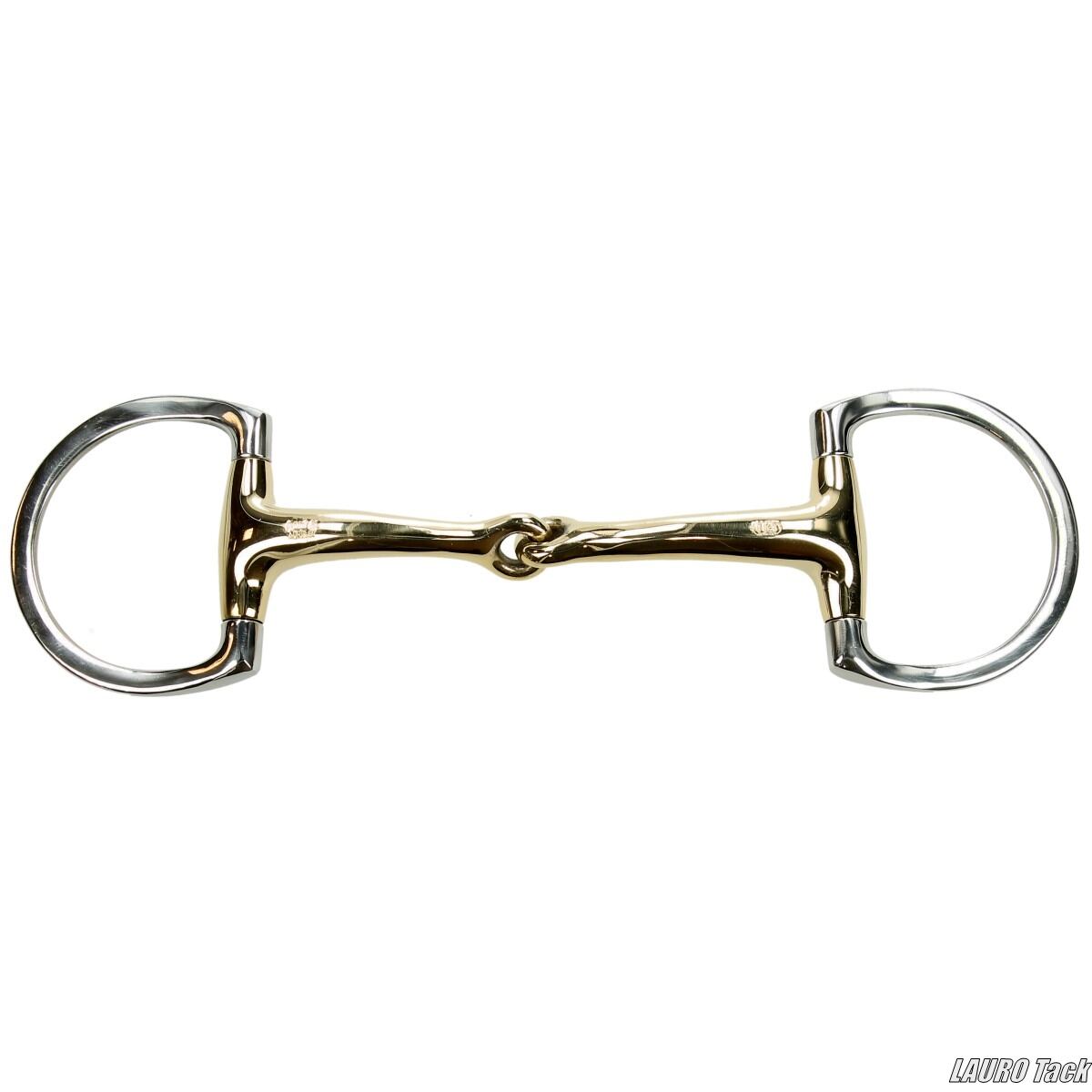 Sensogan素材を使用したDリングタイプのハミです。銅・マンガン・亜鉛を組み合わせた素材により咀嚼を促し、口の中での受け入れが良いのが特徴です。口金は解剖学的に形作られ、舌全体に均等に圧がかかるやさしい設計です。中央に安定しやすいカーブ形状で、手への信頼感を高め、口の中で落ち着きのない馬にも適しています。太さは16mmです。