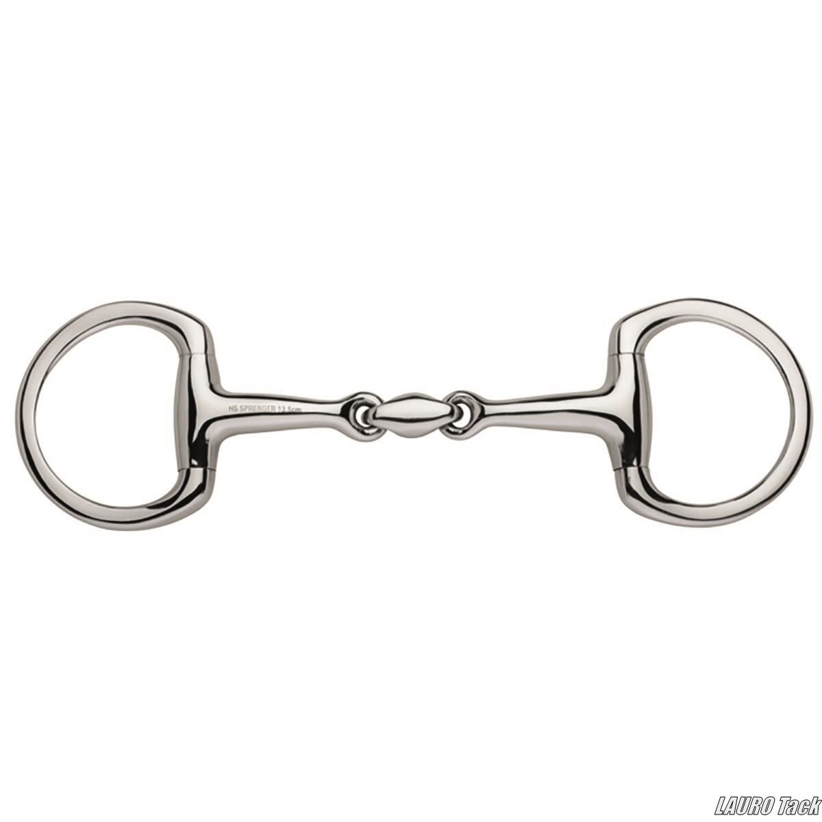 手綱の合図をダイレクトに伝えやすい、Dリングタイプのダブルジョイントハミです。口元での安定感が高く、馬の口に自然に収まりやすい構造になっています。シンプルなステンレス製で、はじめてダブルジョイントを試す場合にも扱いやすい仕様です。