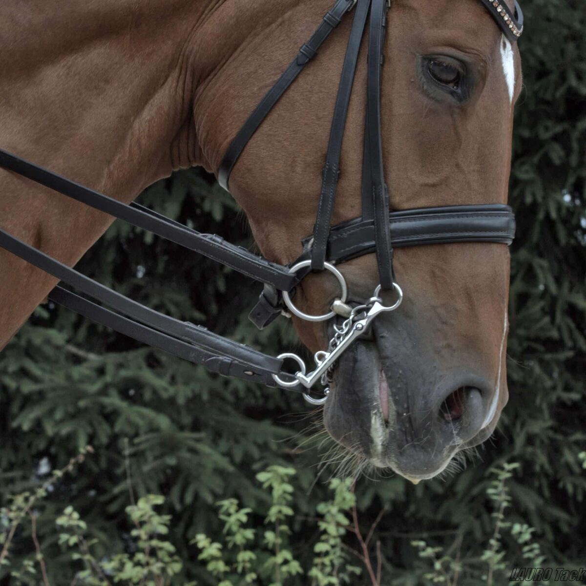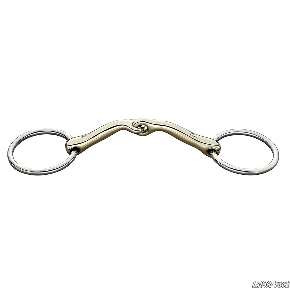 シングルジョイント構造のハミで、舌の縁や下あごにしっかりと圧がかかる設計です。通常のハミでは反応が薄い馬や、手綱に寄りかかりやすい馬に向いています。よりはっきりとした合図を求める場面で使いやすい14mm厚です。