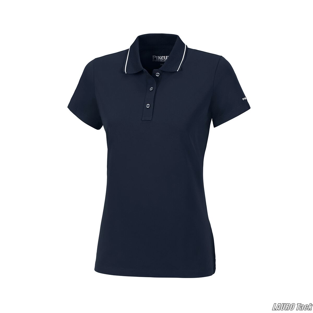 上質感のあるレディース用ポロシャツです。体にきれいに沿うフェミニンなシルエットで、首元は短めのボタン仕様。着心地の良いポロカラーに、光沢感のあるボタンと襟まわりの配色ラインがアクセントになっています。左袖にはブランドロゴ入りです。