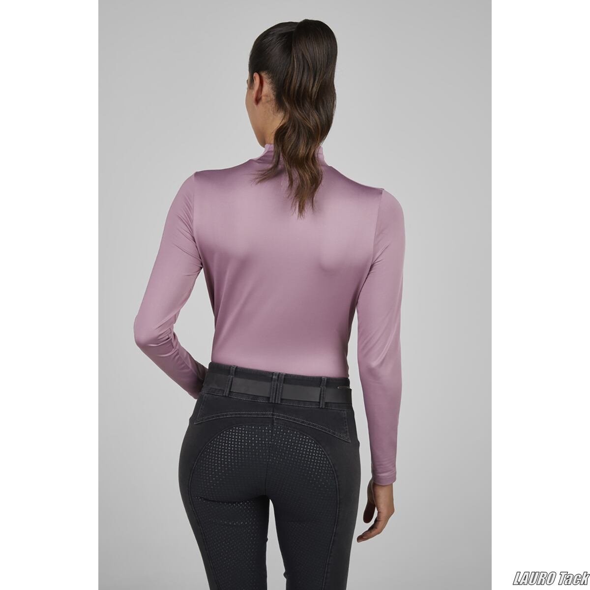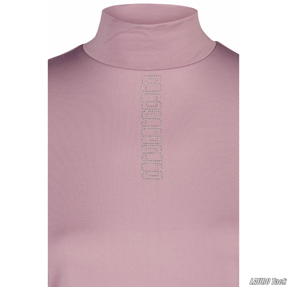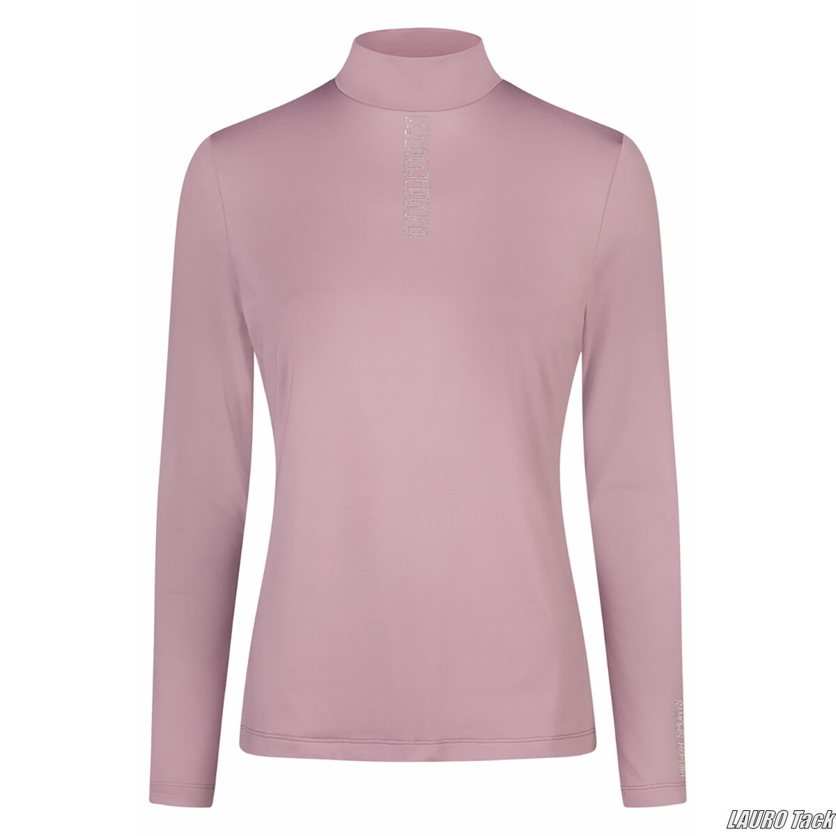 速乾性と伸縮性に優れた素材を使用した、スポーティーなレディース用タートルネックシャツです。動きやすく、トレーニング時にも快適に着用できます。ラインストーンやスタッズによる装飾が、シンプルな中に華やかさを添えています。