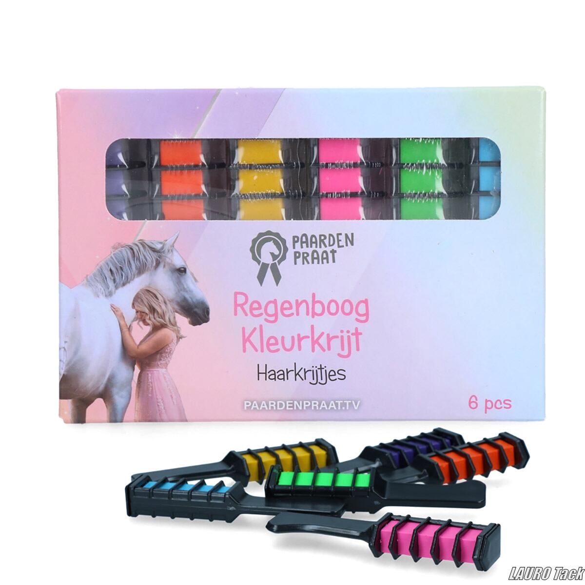 馬のたてがみや尾、そして自分の髪にも使える、PaardenpraatTVのヘアクレヨンです。鮮やかな6色セットで、自由な発想でデコレーションを楽しめます。イベントや写真撮影にもぴったりで、明るく楽しいギフトとしてもおすすめです。