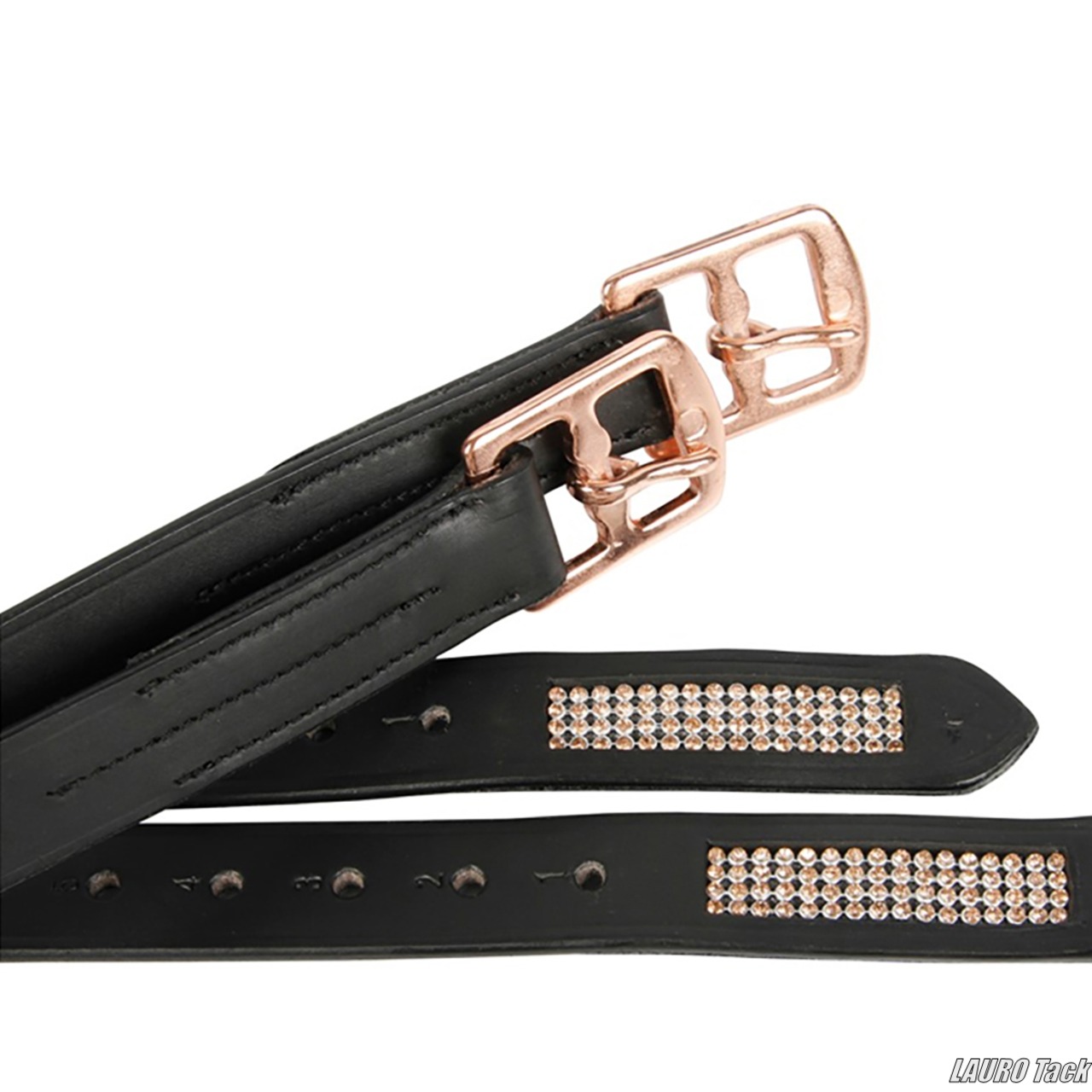 エンド部分にシルバーカラーのラインストーンをあしらった、Harry’s Horseのシックな鐙革です。強くしなやかなレザーを使用し、バックル部分はナイロンで補強されています。シルバーカラーの金具付きで、左右セットです。