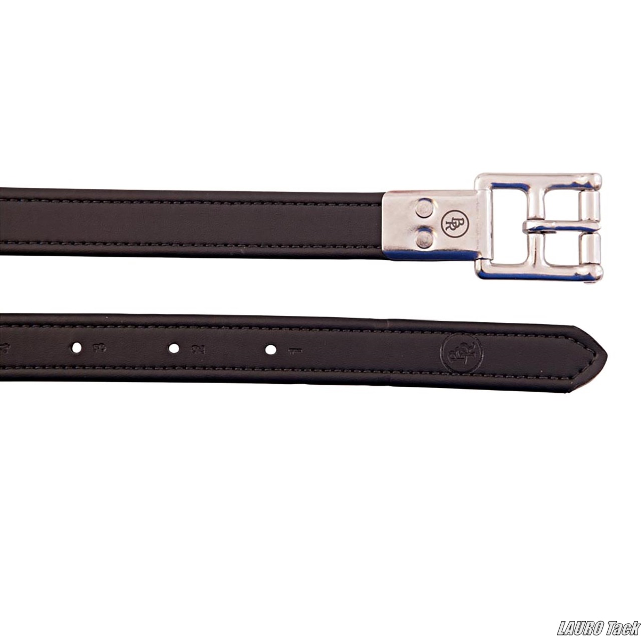 PVC素材を使用した、BRの丈夫な鐙革です。しっかりとしたポリエステル芯を内蔵しており、強度に優れています。レザーのような外観で、ステンレス製バックルを装備しています。幅は2.5cmです。