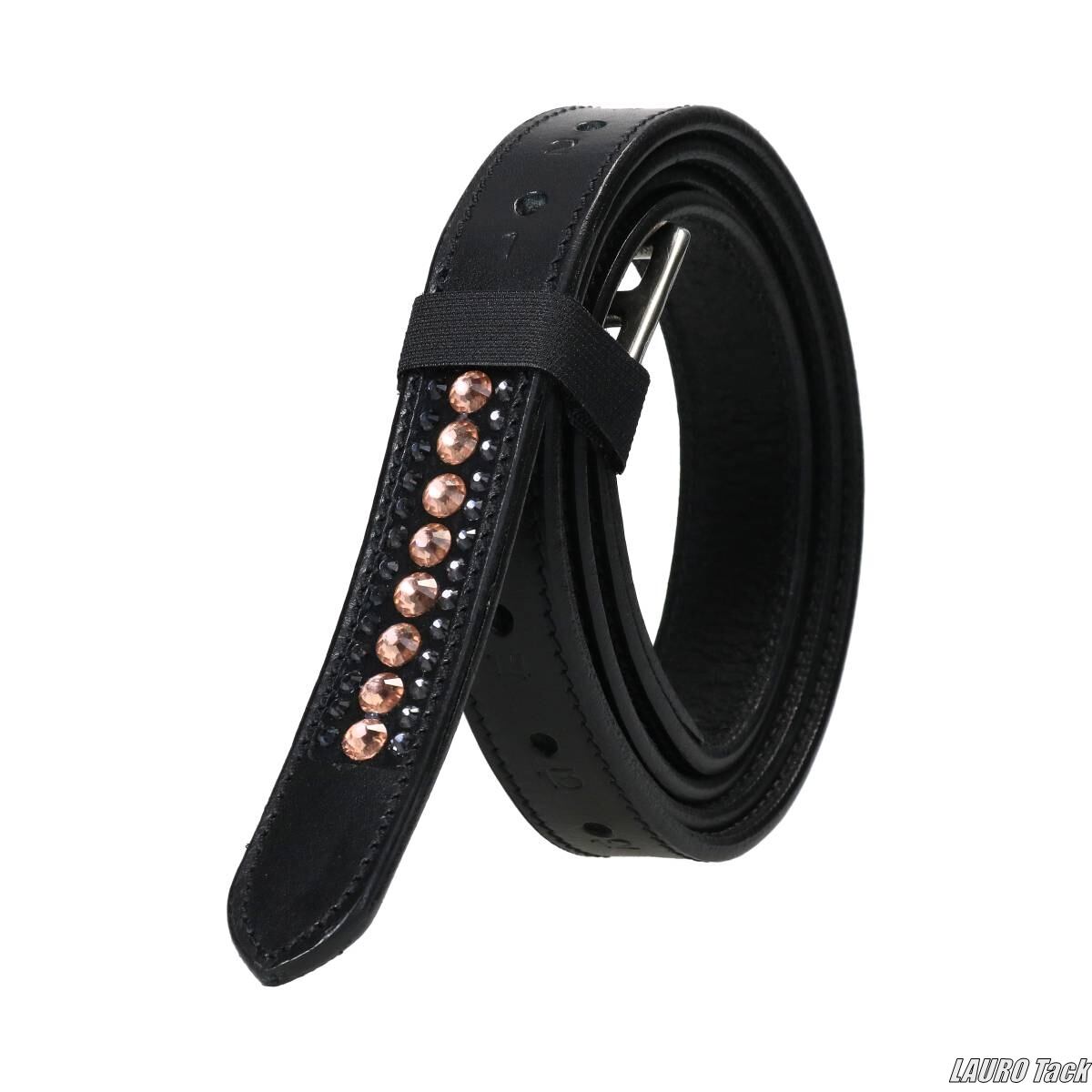 エンド部分にラインストーンをあしらった、Epplejeckのスタイリッシュな鐙革です。サイズとカラーの異なるラインストーンが装飾され、上品な印象に仕上がっています。丈夫でしっかりとしたレザーを使用し、強度のある芯材とバックルを備えています。