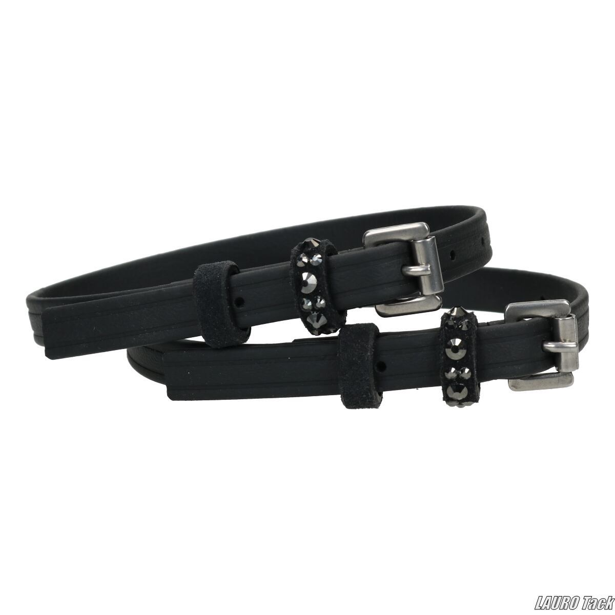 バイオタン(合成素材)を使用した拍車革です。水や汚れに強く実用性に優れながら、クリスタル装飾によって足元を上品に演出します。ブラックを基調とした落ち着いたデザインで、左右1組での販売です。