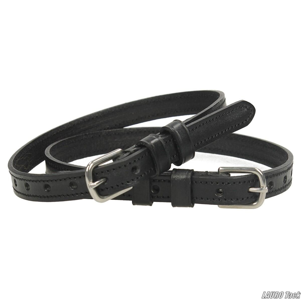 マットな質感が落ち着いた印象のレザー拍車革です。高級感のあるステッチが施され、柔軟性のある上質なレザーで快適な装着感を実現します。シルバーカラーのバックルを採用し、左右1組での販売です。