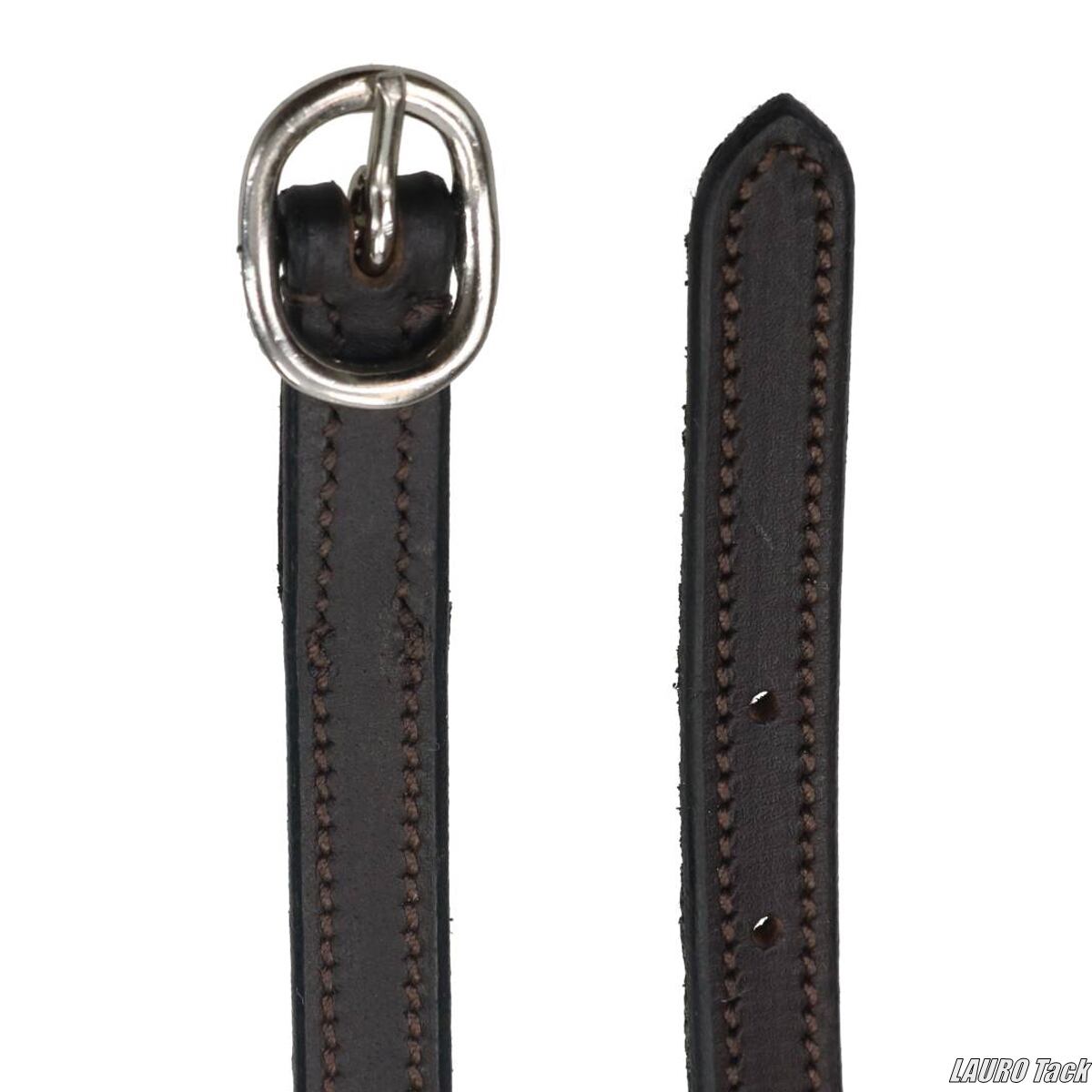 上質感のあるレザー拍車革です。柔らかくしなやかなレザーを使用し、カラーや金具の組み合わせを選べる仕様です。ゴールドまたはシルバーカラーのバックルを備え、左右1組での販売です。