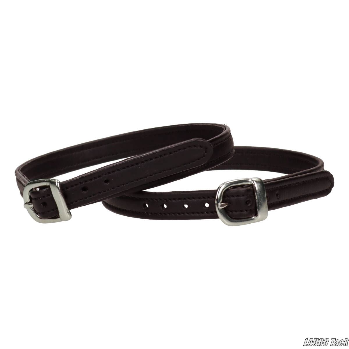 しなやかな質感の良いレザーを使用した拍車革です。シルバーカラーのバックルを備え、左右1組での販売です。