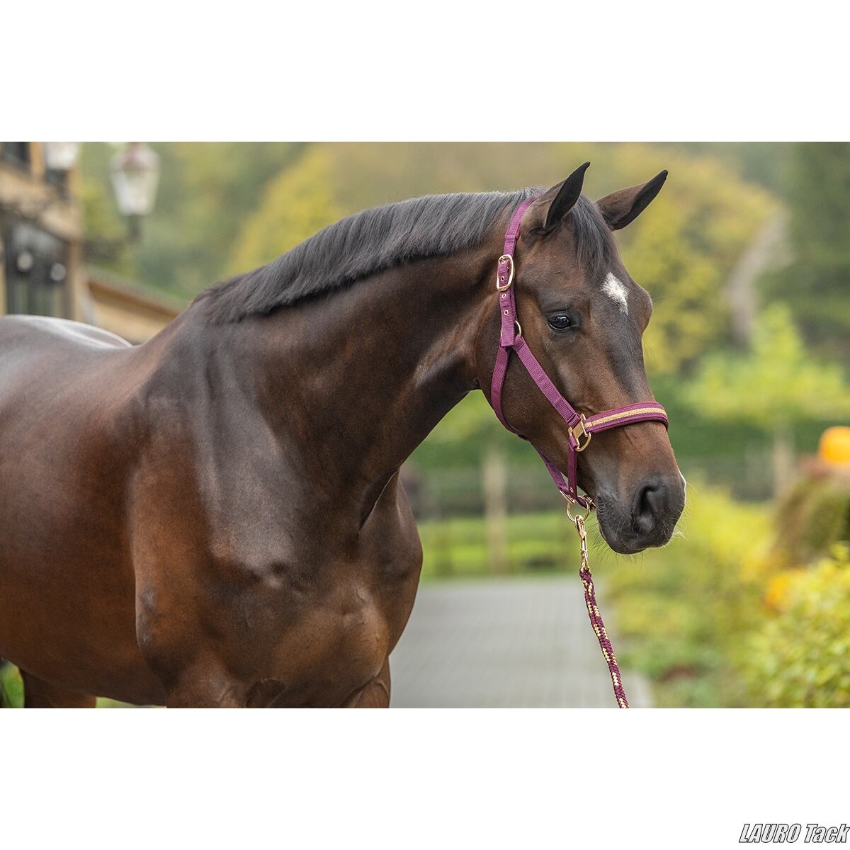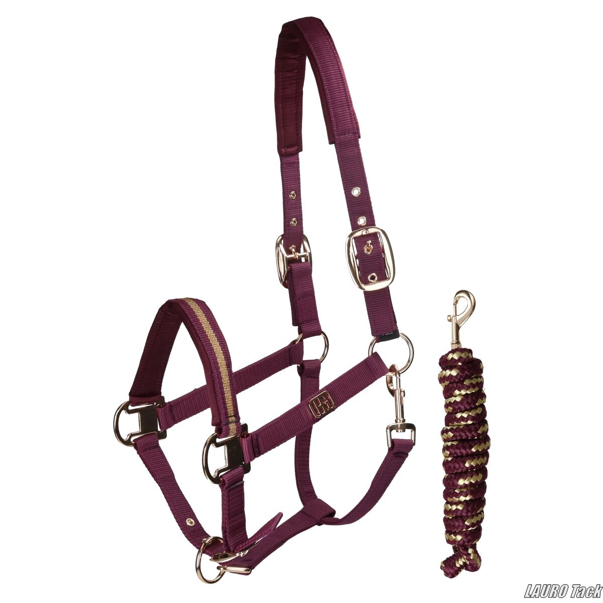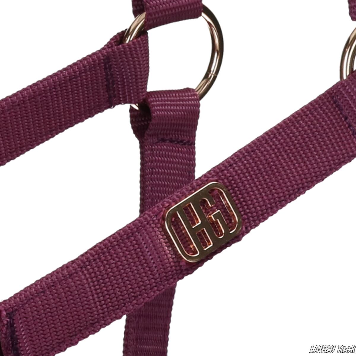 ウィンターコレクションの無口セットです。頭部と鼻革にはクッション性のあるパッドを採用し、快適な着け心地に配慮しています。頭部は左右から調整可能で、鼻革もサイズ調整に対応。しっかりとした金具と、ツートンカラーのおそろい引手がセットになっています。頬部分にはバッジがあしらわれています。