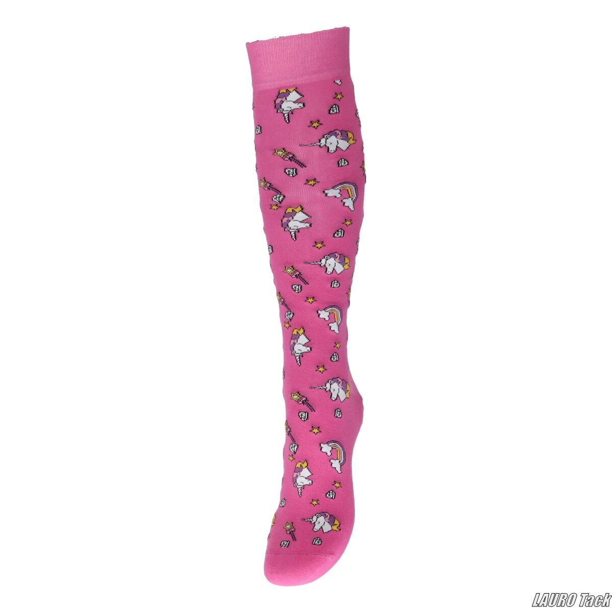 ユニコーンやレインボー、星柄を全面にあしらった、ポップで可愛らしいライディングソックスです。足裏にはやわらかなクッション入りで、快適な履き心地。コーディネートの仕上げとしても活躍します。