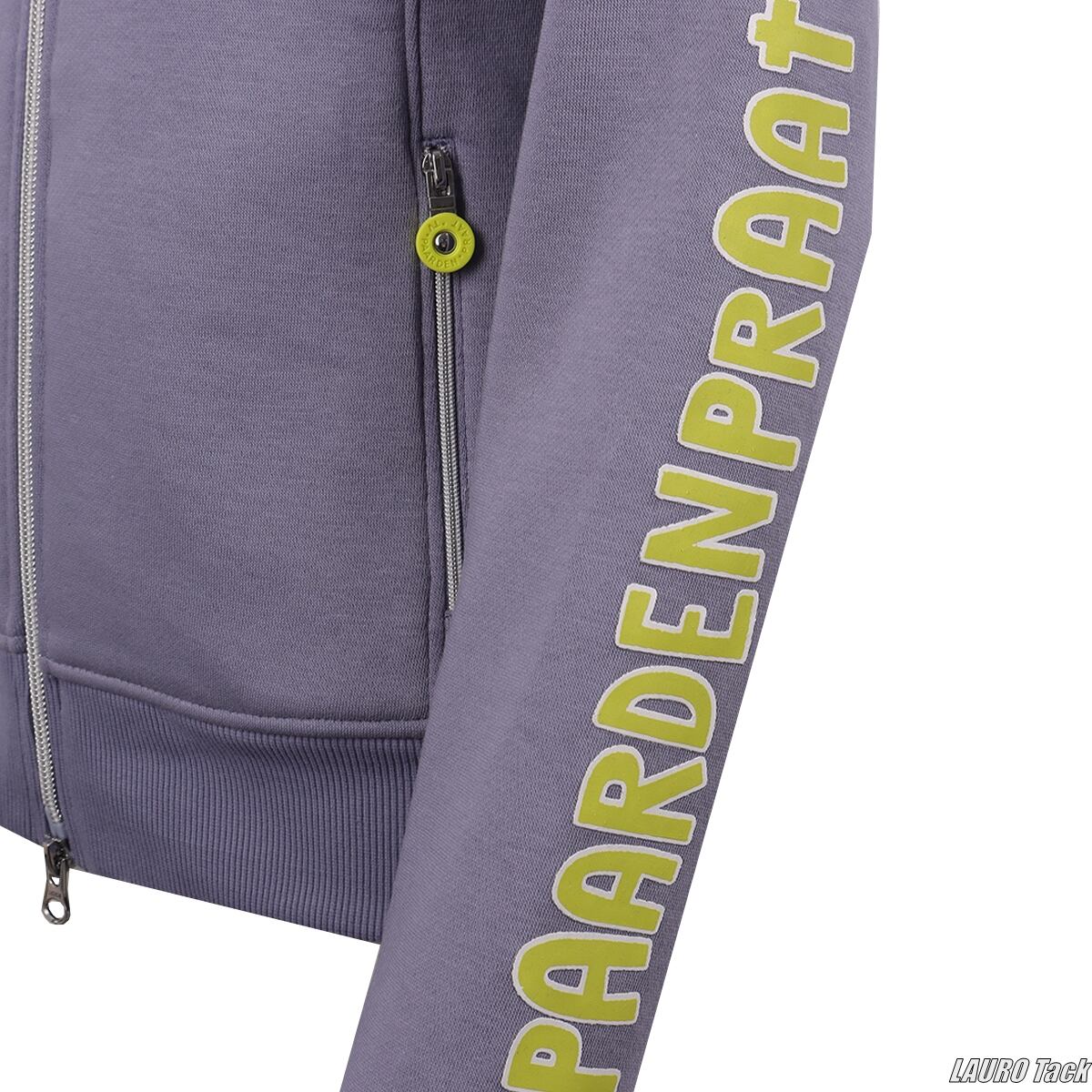 Paardenpraat By Ej Teddy Kids シリーズのキッズ用ジップアップスウェットです。動きやすく、日常のさまざまなシーンで使いやすいデザインです。