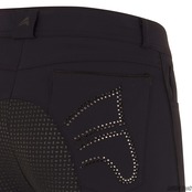 軽量で耐久性に優れたマイクロファイバー素材を使用した、スポーティーなフルグリップキュロットです。動きやすく、暑い季節でも快適に着用できます。人間工学に基づいたシーム設計により、騎乗時の動作を妨げず高い快適性を実現しています。フルシリコン仕様のグリップが安定した騎乗をサポートします。ラインストーンがあしらわれたポケットが、さりげない華やかさを添えます。