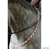 USB充電式バッテリーを内蔵したLEDライト付きネックレインです。常灯・高速点滅・低速点滅の3モードをワンクリックで切り替え可能。防水仕様のため雨天時の使用にも対応します。長さ150cmで、不要部分をカットすることでサイズ調整が可能。夜間や薄暗い時間帯の外乗時に視認性を高め、安全対策として役立ちます。