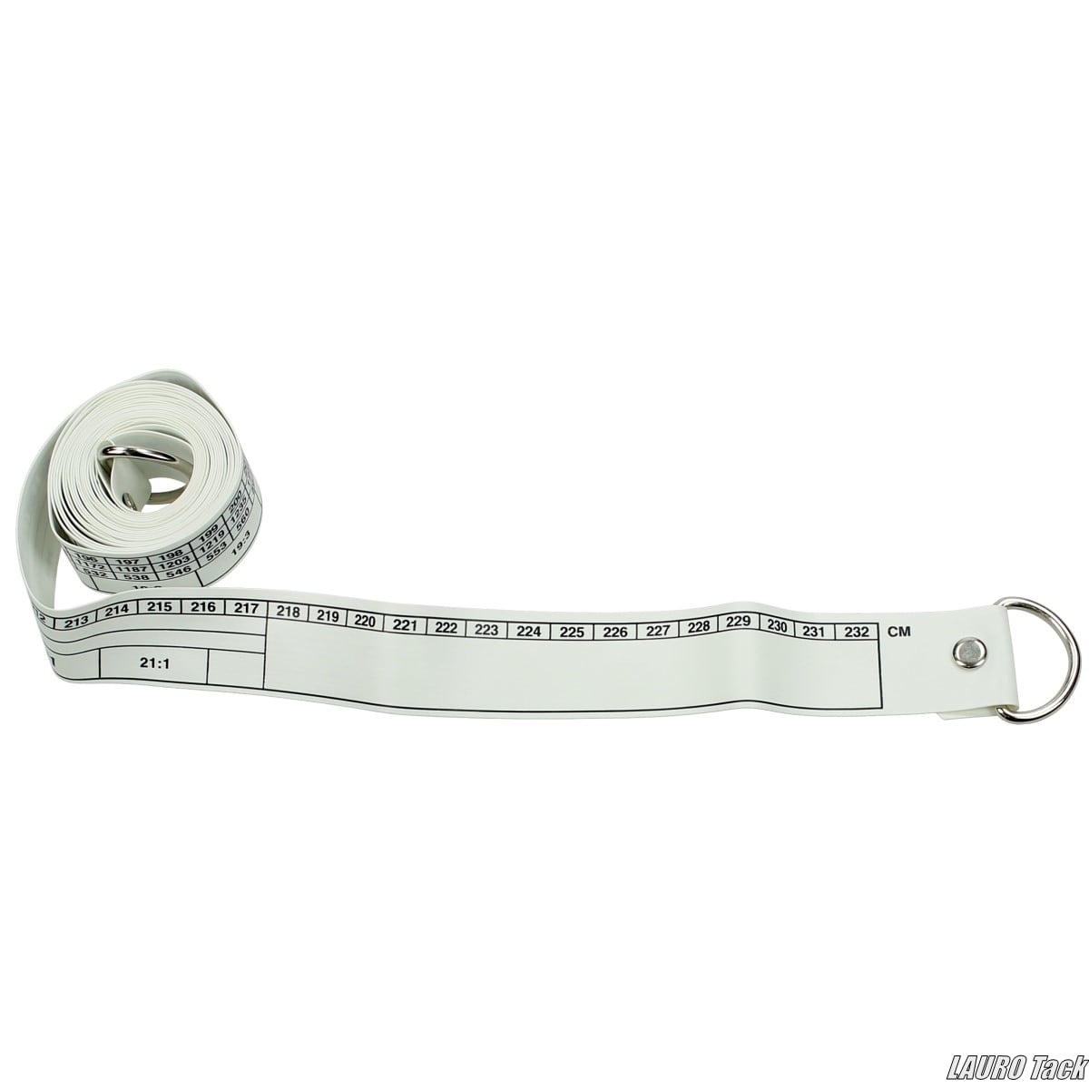 馬やポニーのおおよその体重を測るためのメジャーです。丈夫で汚れても拭き取りやすく、日常的に使いやすい仕様。体重の変化を年間を通して確認でき、飼料の量や駆虫薬、投薬量の目安を決める際に役立ちます。センチメートル・キログラム表示と、インチ・ポンド表示の両方に対応しています。表示される体重は目安であり、実際の体重には多少の誤差が出る場合があります。